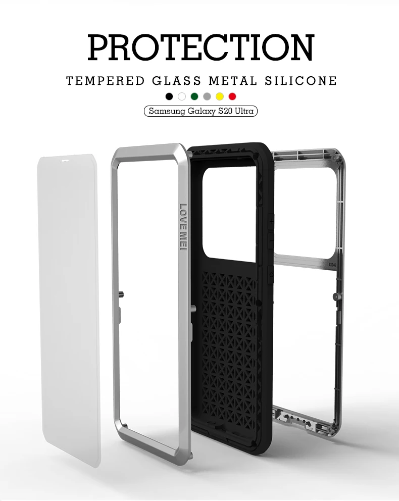 Чехол LOVE MEI для Samsung Galaxy S20 Ultra, алюминиевый, металлический, водостойкий, ударопрочный, прочный