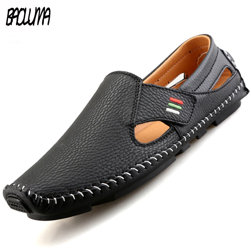 Мужские повседневные Мокасины, дышащие, на липучке, большие размеры 37-48, для лета, вождение, для катеров