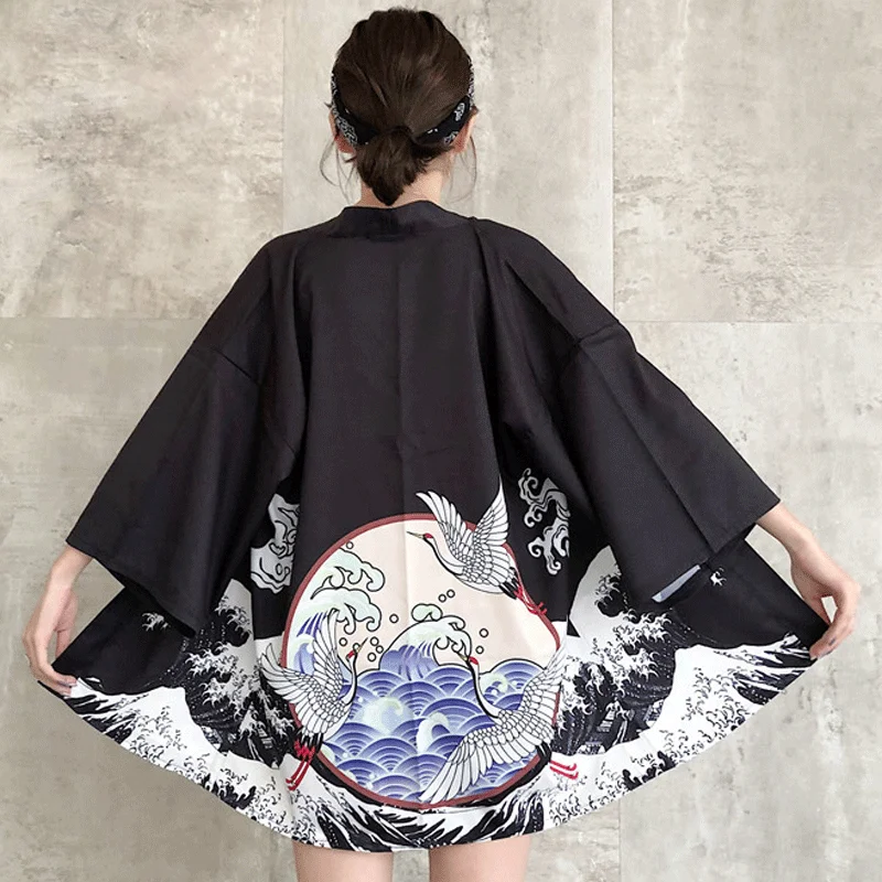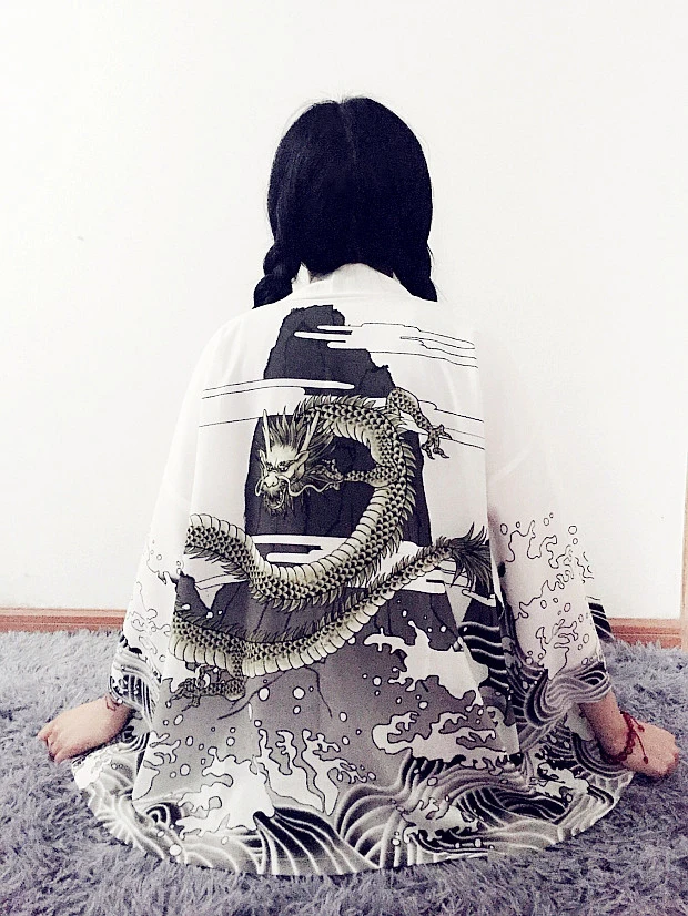 Летняя японская куртка-кимоно в стиле Харадзюку, женский свободный кардиган с рисунком, солнцезащитное пальто