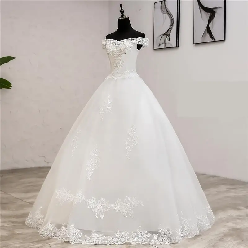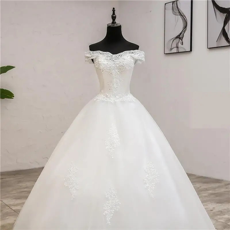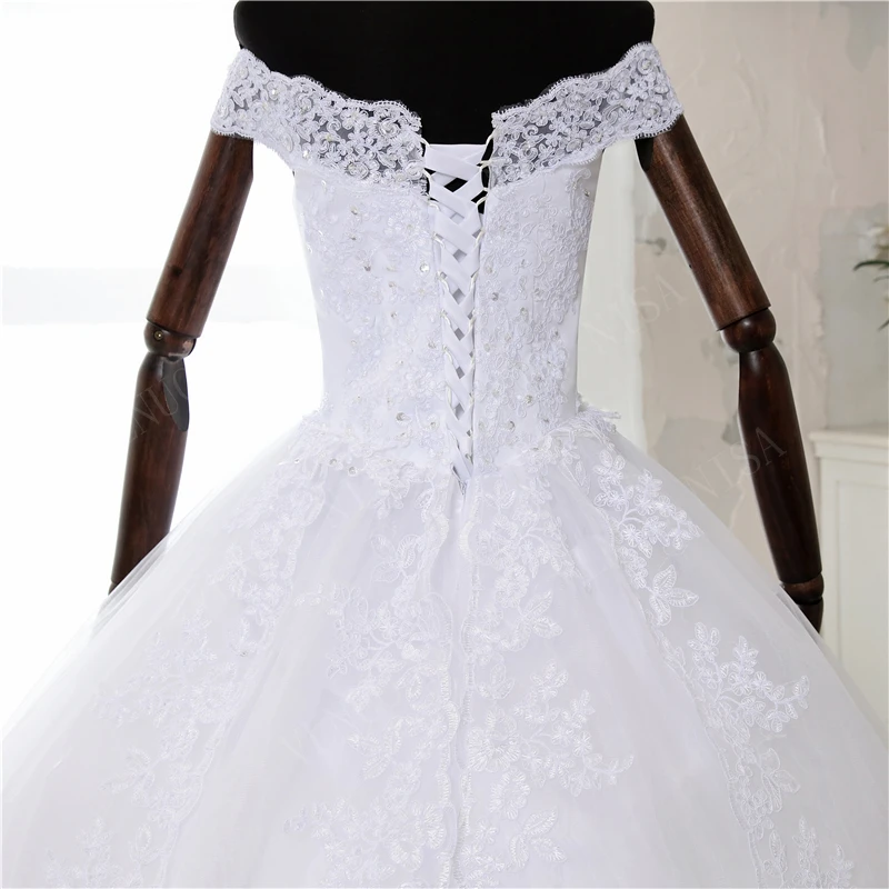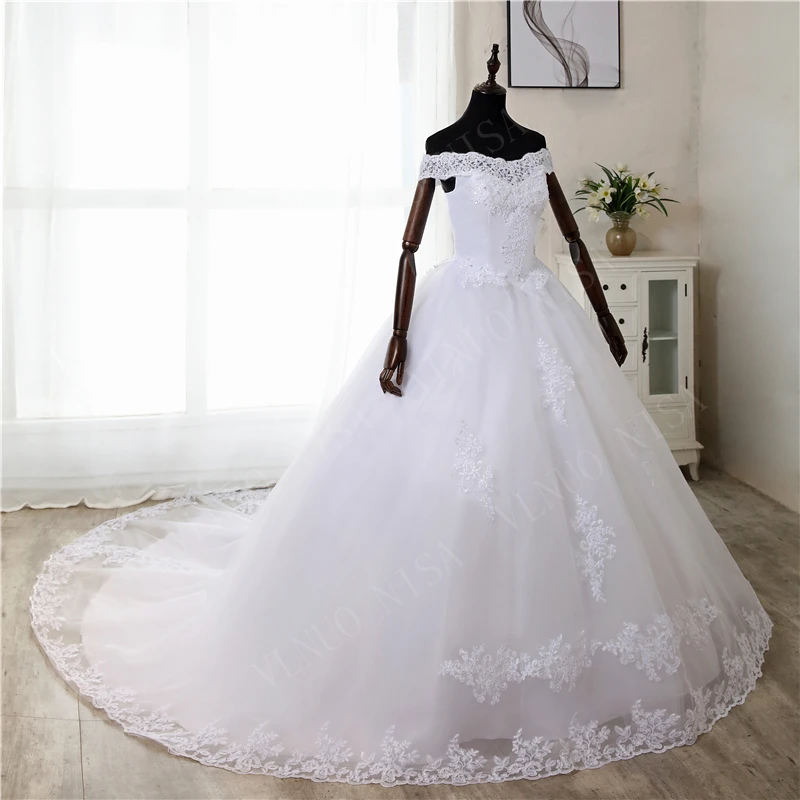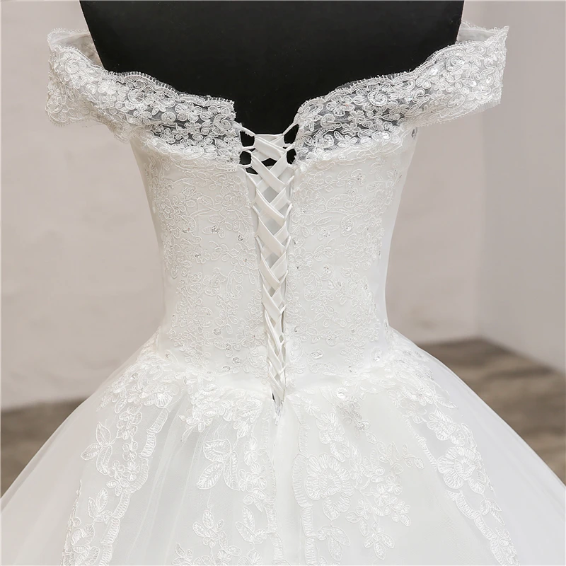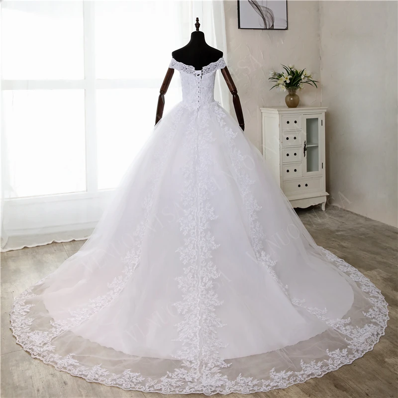 Элегантное роскошное кружевное платье, винтажное белое свадебное платье с длинным шлейфом и открытыми плечами, размера плюс на заказ