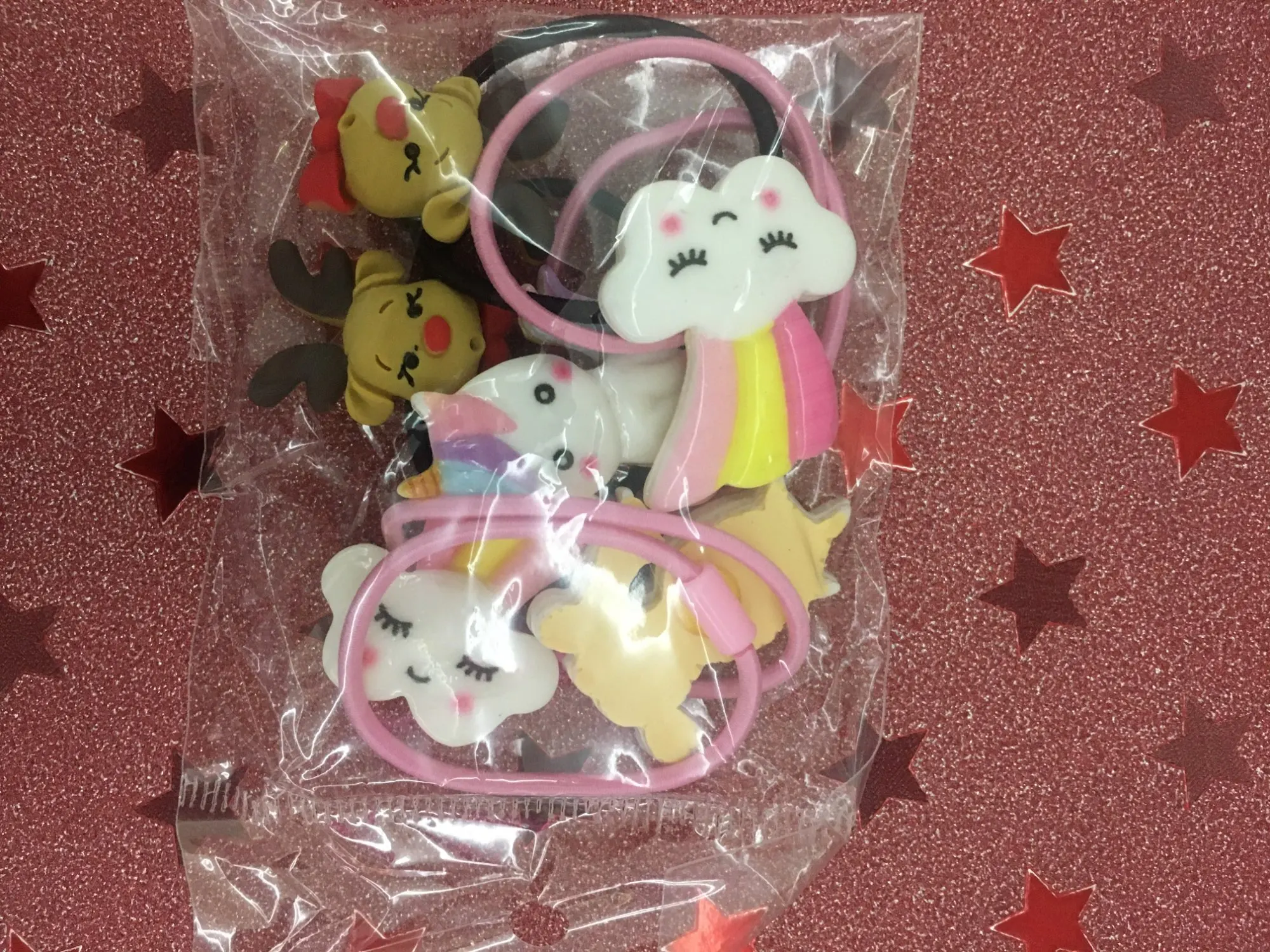 резинки в целом красивые, но у одного единорога не было рога, видимо отвалился где-то в пути.