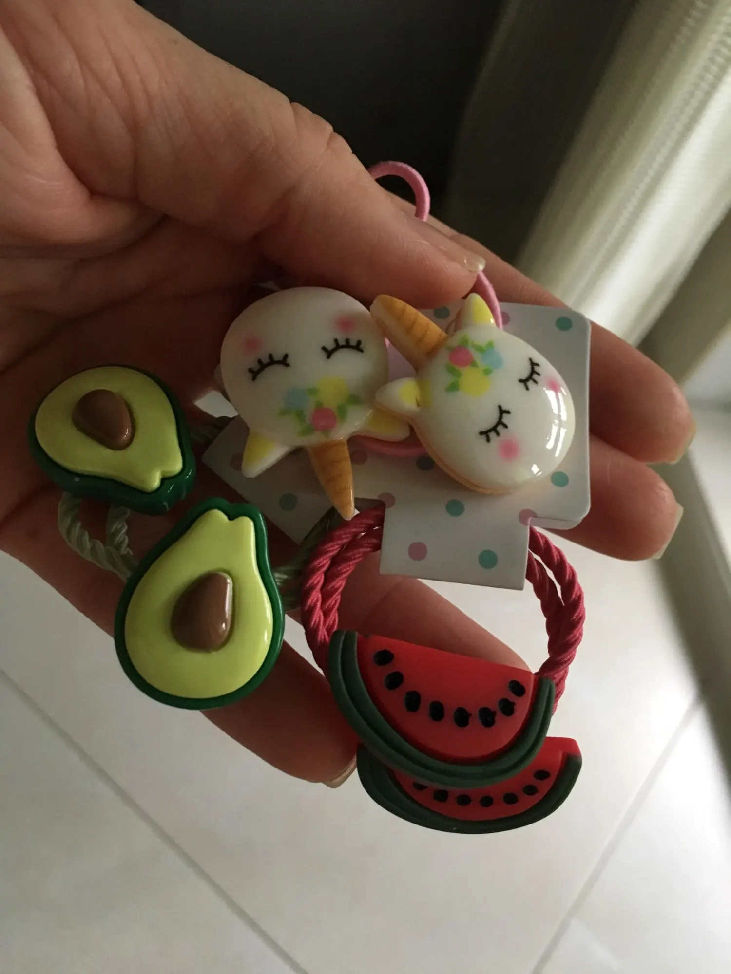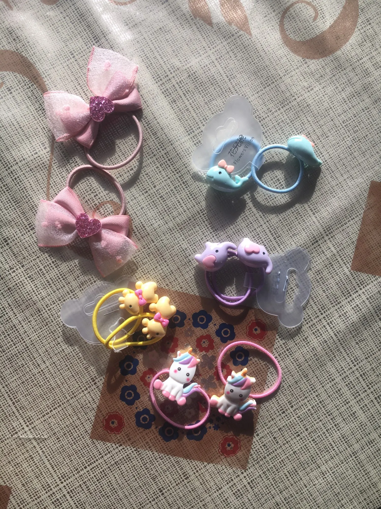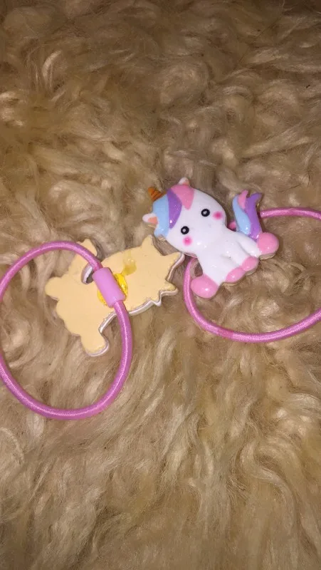 Очень красивые резиночки, сделаны качественно, цвета яркие, все прямо как на картинке. Единственный Минус, как мне кажется, тяжеловаты из-за декора, хвостики не держатся, но если больше волос будет, то будет отлично. Но советую, все равно