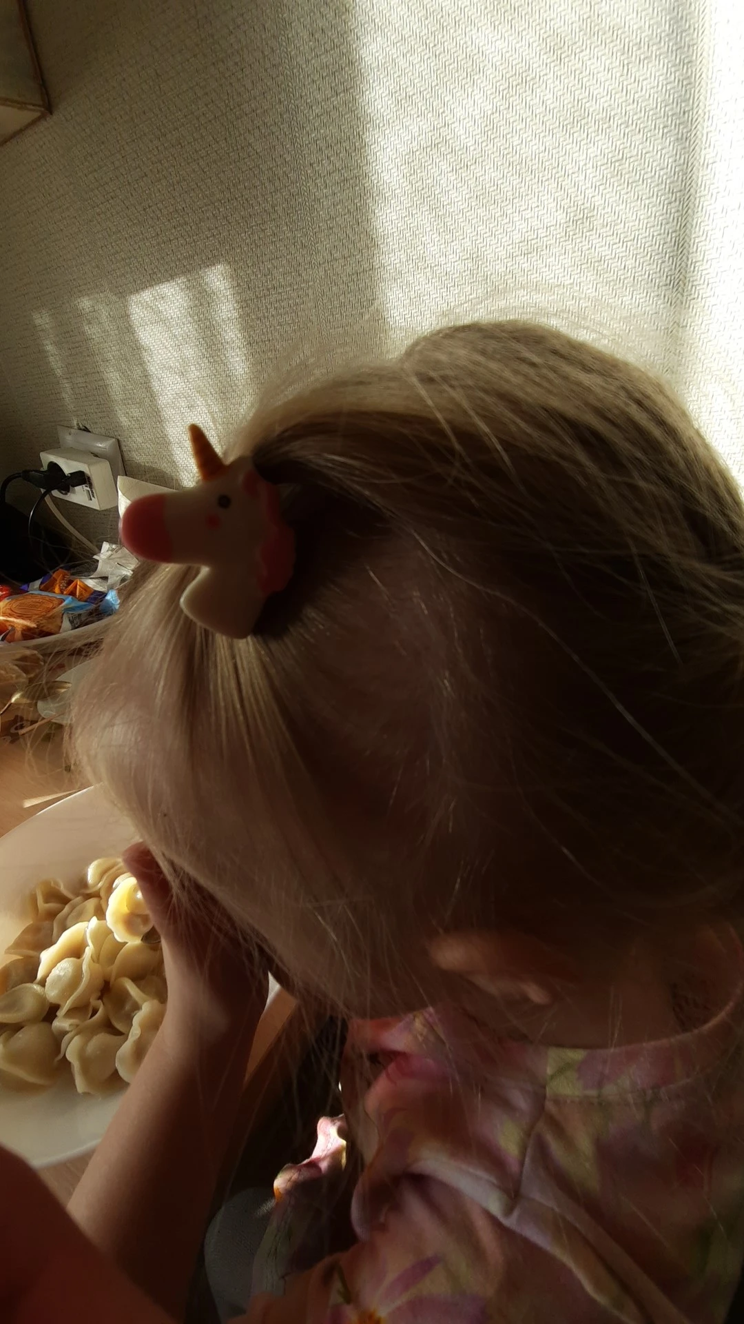Не на густые волосы. Резинки хорошие, крепкие. Единорожки держатся хорошо. Выглядят так же, как и на фото