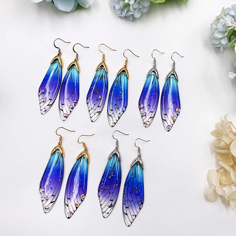 Женские Висячие серьги ручной работы, золотого цвета, сказка Цикада, крылья, стразы, фиолетовая бабочка, винтажные ювелирные изделия