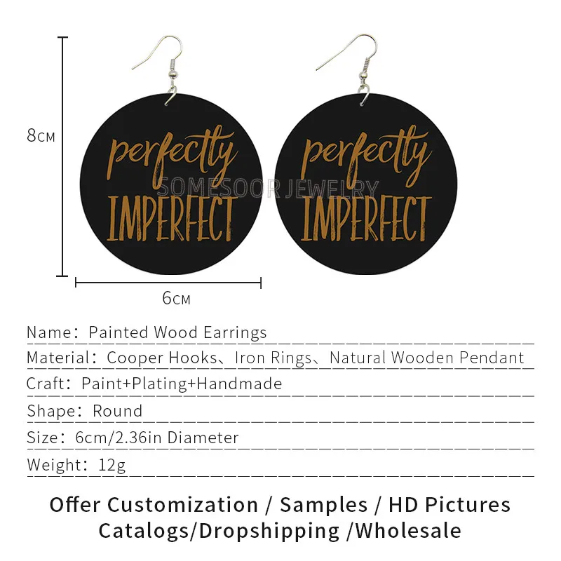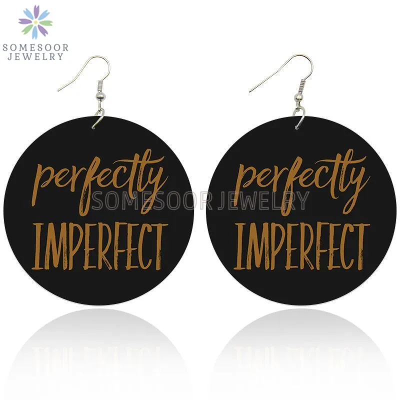 Серьги-подвески женские SOMESOOR, деревянные, с несовершенными черными изречениями