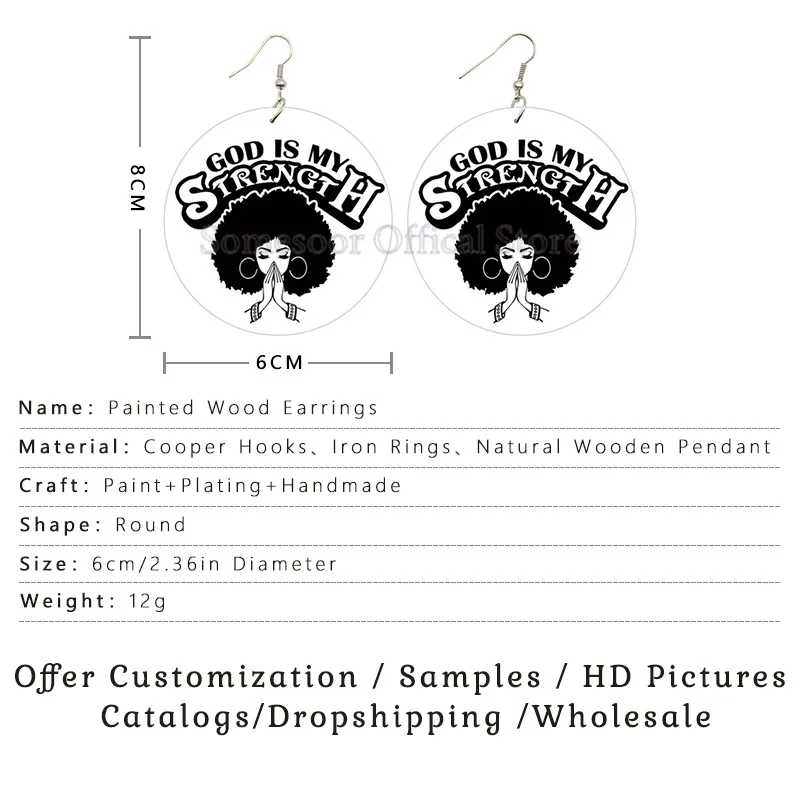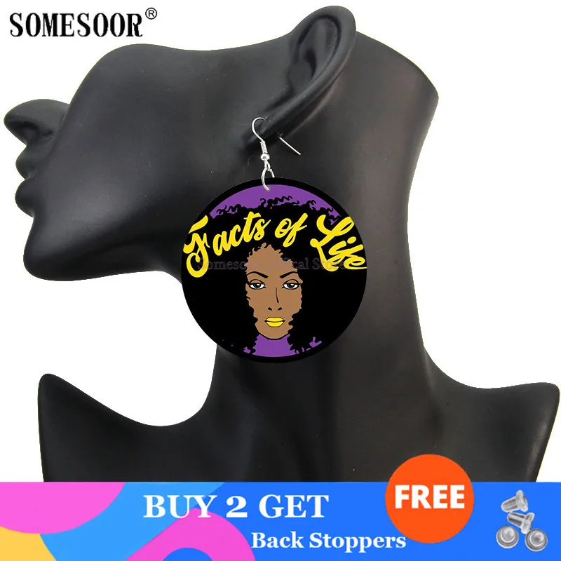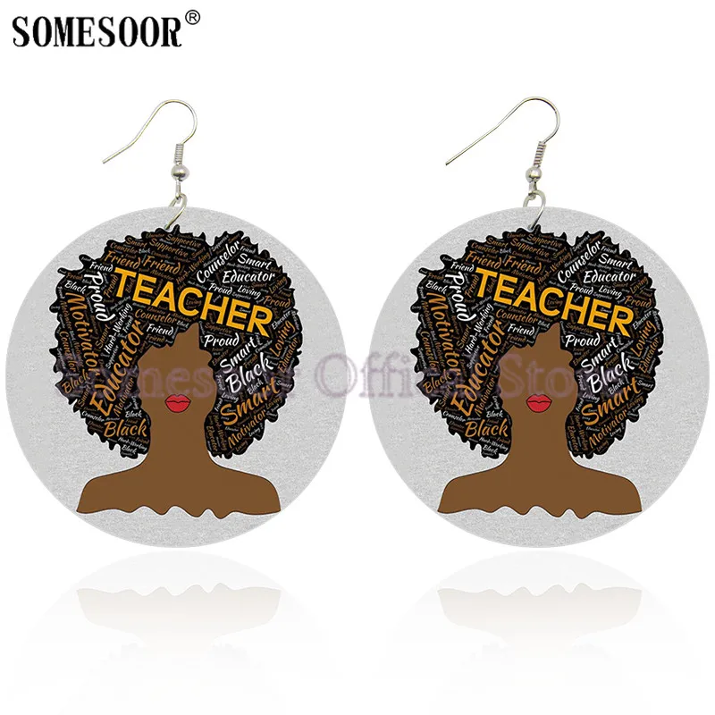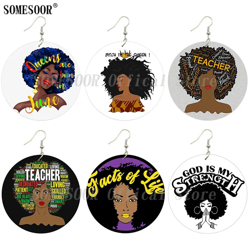 Деревянные серьги-капли SOMESOOR для образованных учителей, Черная Королева, Бог мой силы, искусство росписи, большие деревянные, подарок для женщин, ювелирные изделия с петлями