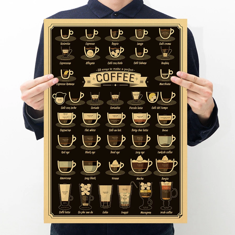 Классический черный кофе, пиво 1944, коллекция колесиков, ретро постер из крафт-бумаги для бара, кафе, дома, ностальгическая декоративная картина