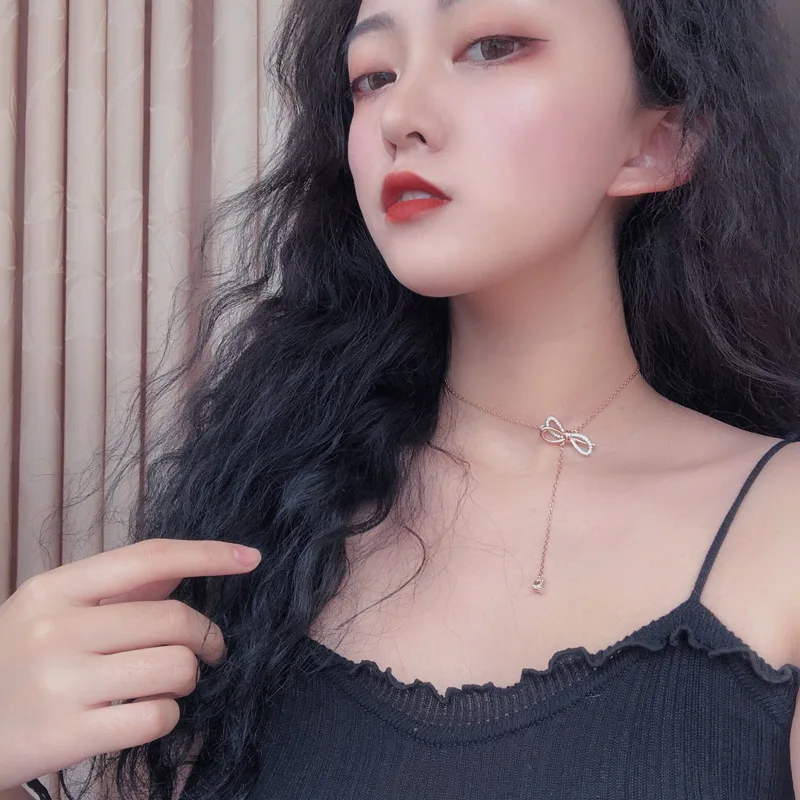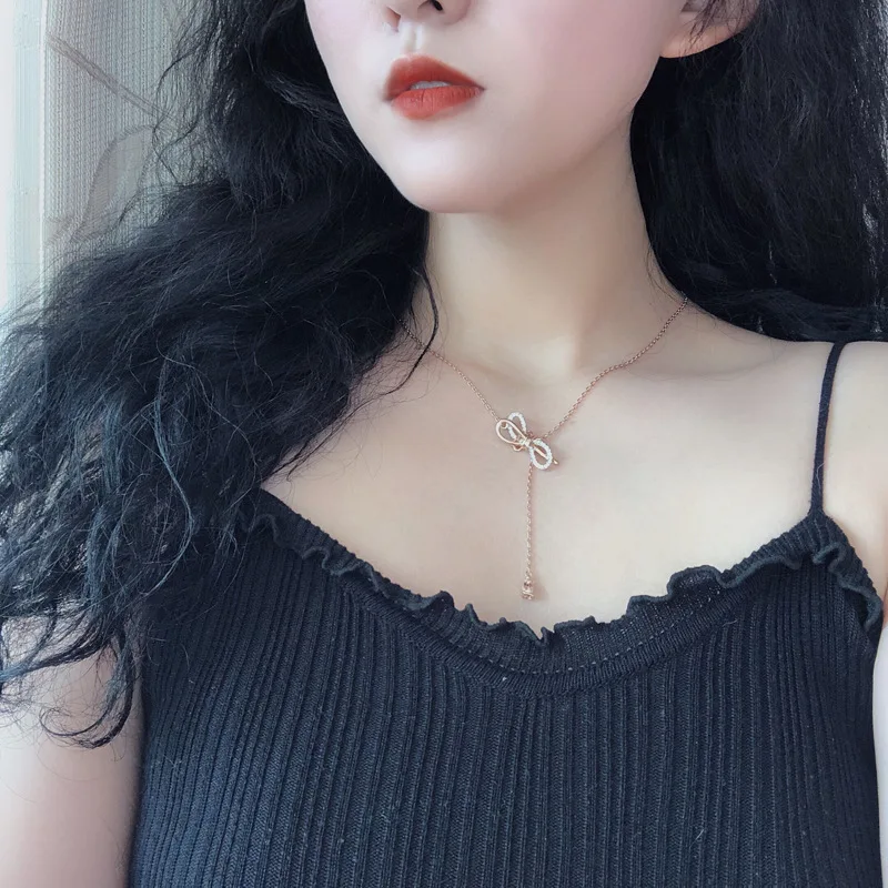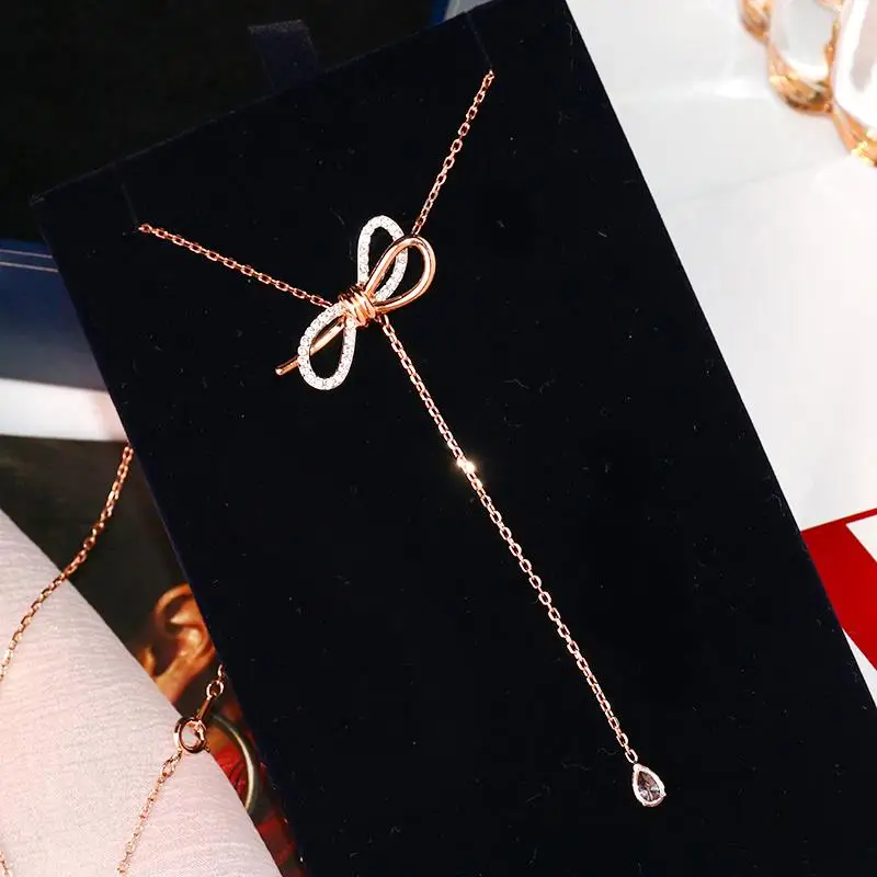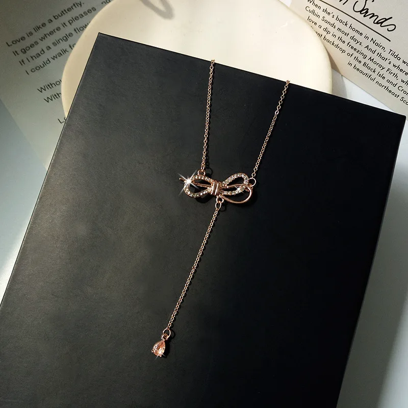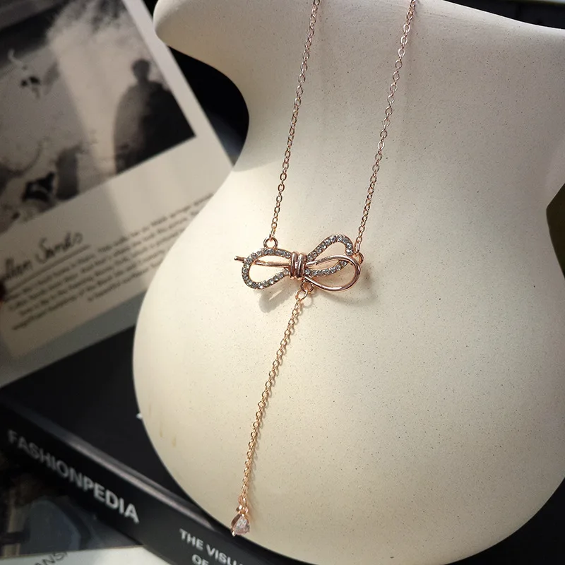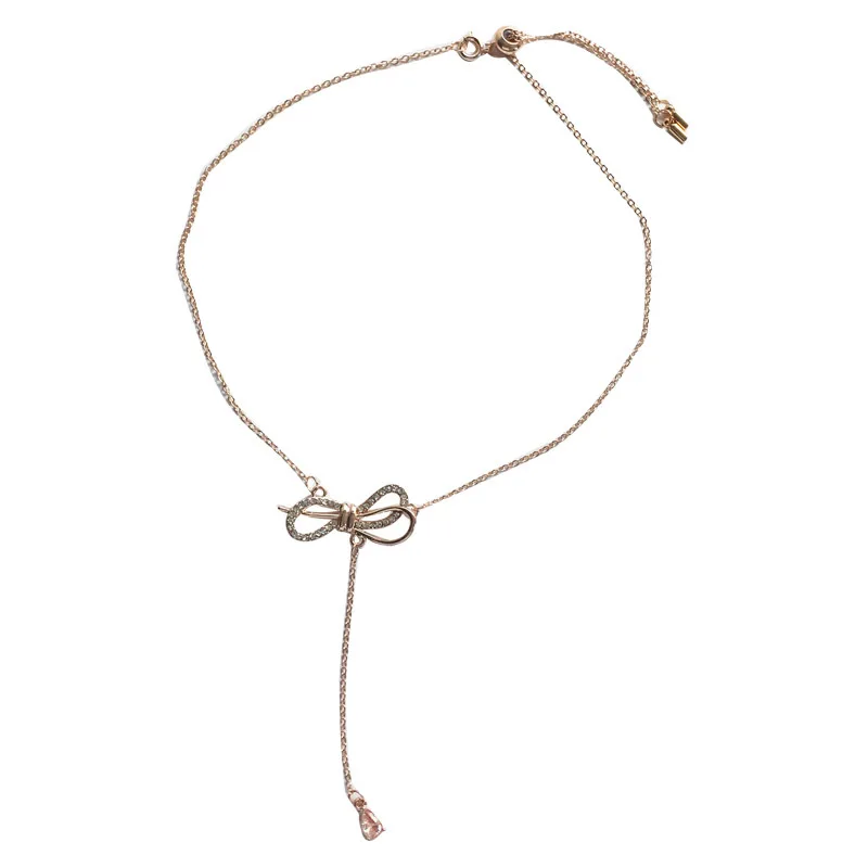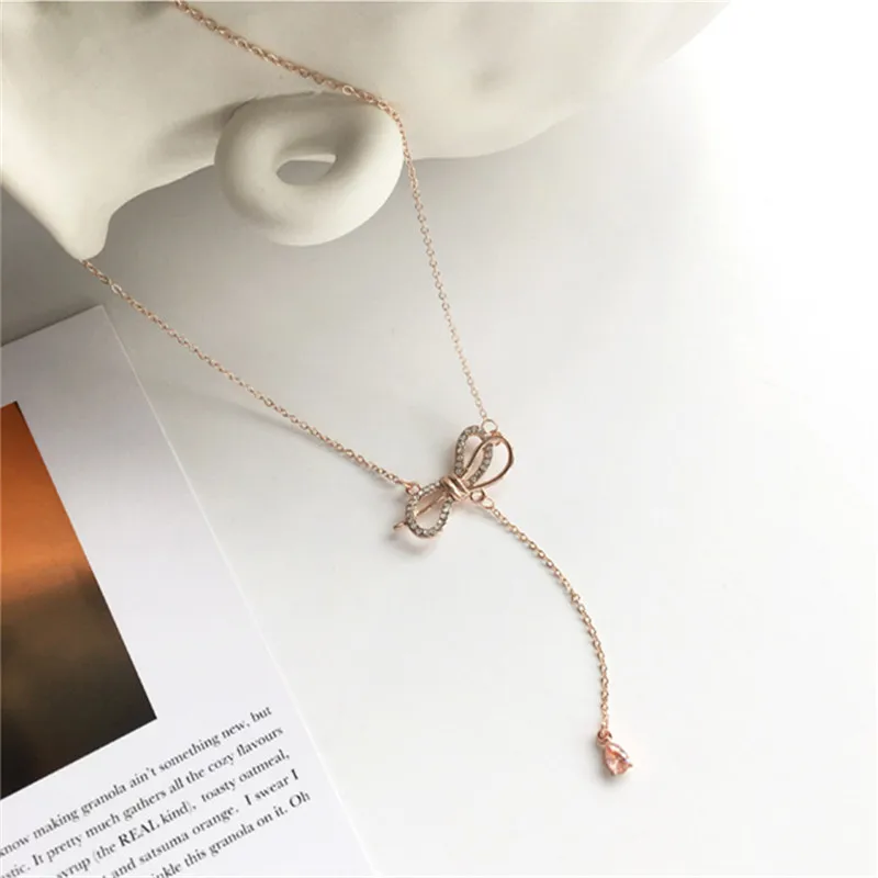 Кулон ожерелья ожерелье с бантиком розовое золото ожерелье капельки кристалл кулон цепь колье для ключиц Свадебные украшения