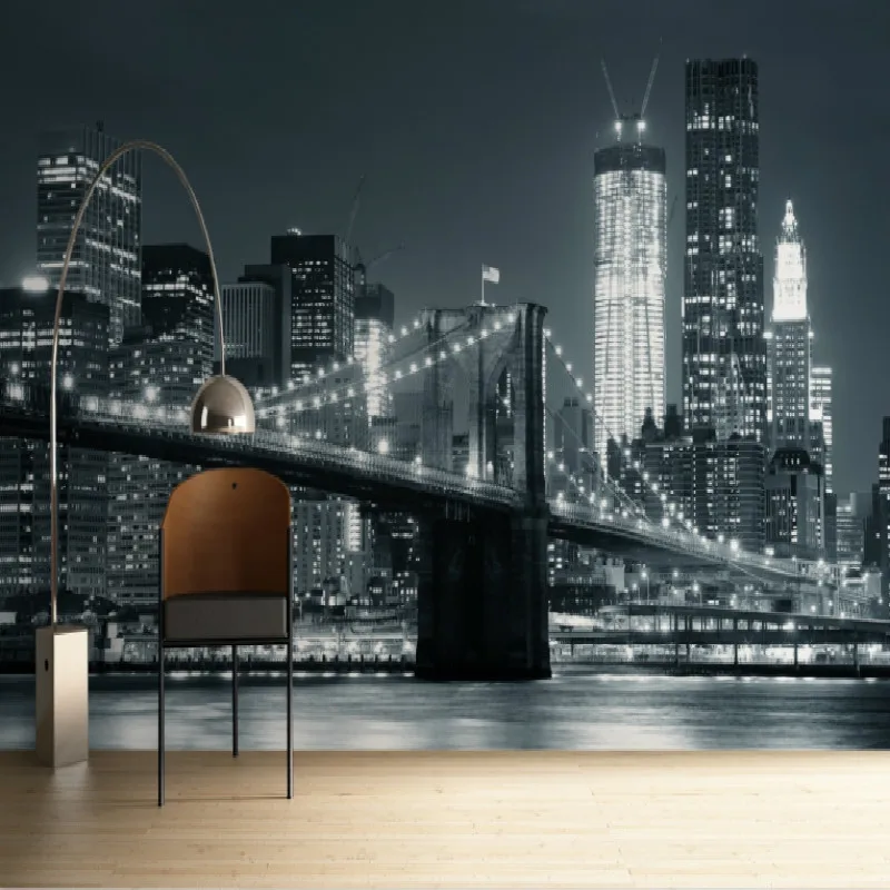 Фотообои с подсветкой Бруклинский мост 3D фотообои для стен Черная 3D настенная бумага для стен знаменитые городские ориентиры настенная ткань