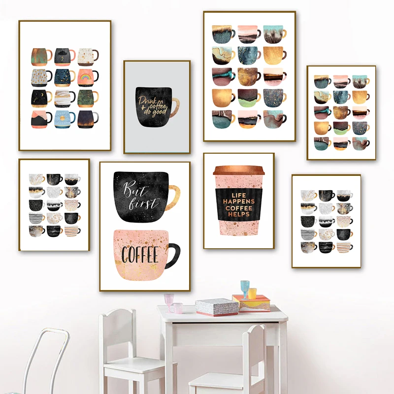 Но первый кофе красочные чашки кофе Кухня Печать постер Скандинавская холст картины настенные картины для гостиной домашний декор