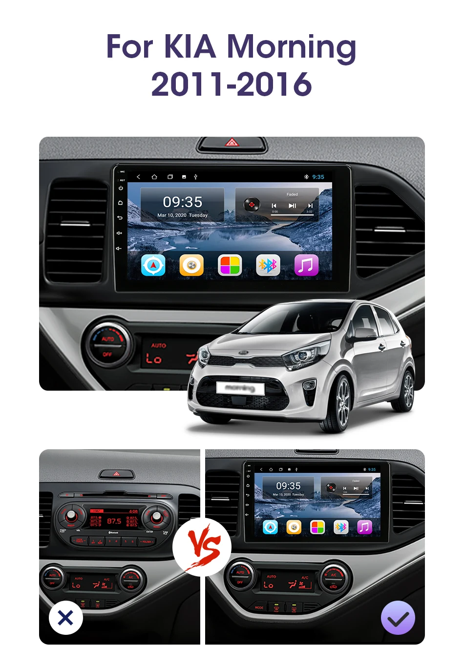 Мультимедийная магнитола Vtopek для KIA Morning, мультимедийная стерео-система на Android 10, с 9 "экраном, GPS, видеоплеером, для KIA Morning Picanto, типоразмер 2DIN, 2011-2016
