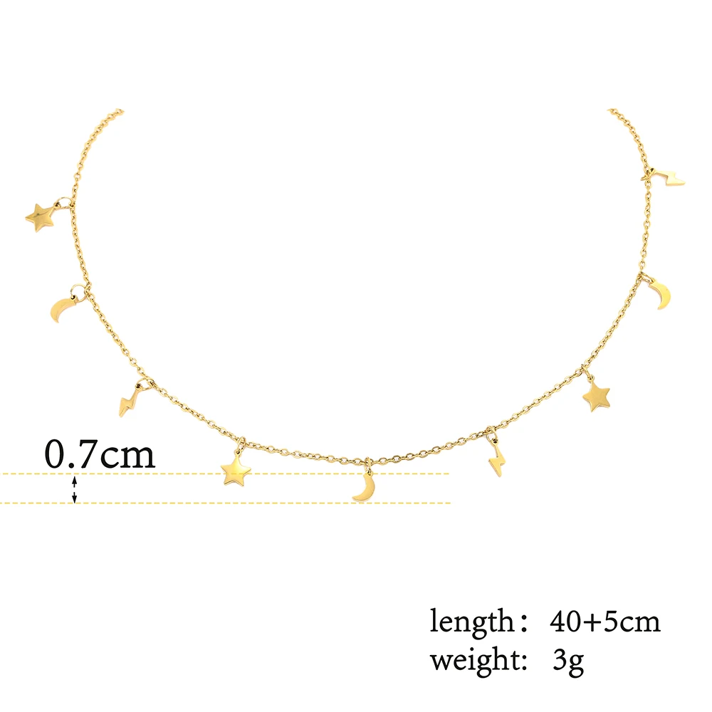 Тип товара: ожерелье с Луной и звездойТип ожерелья: подвескаПол: женщин и мужчинТип цепи: звенья цепиМатериал: нержавеющая стальСтиль: Модный