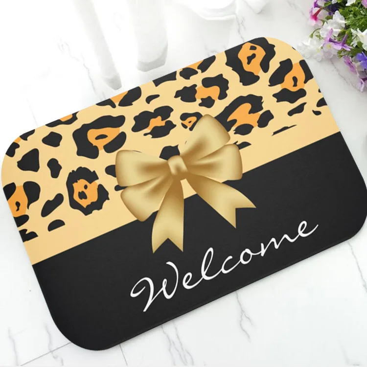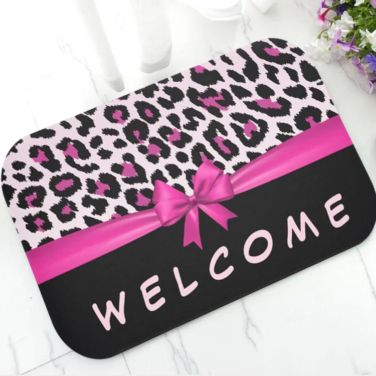 Стильный ярко-розовый Леопардовый Принт ленты Добро пожаловать дверной коврик элегантная лента дверной коврик ковер напольные Входные Коврики резиновый домашний декор