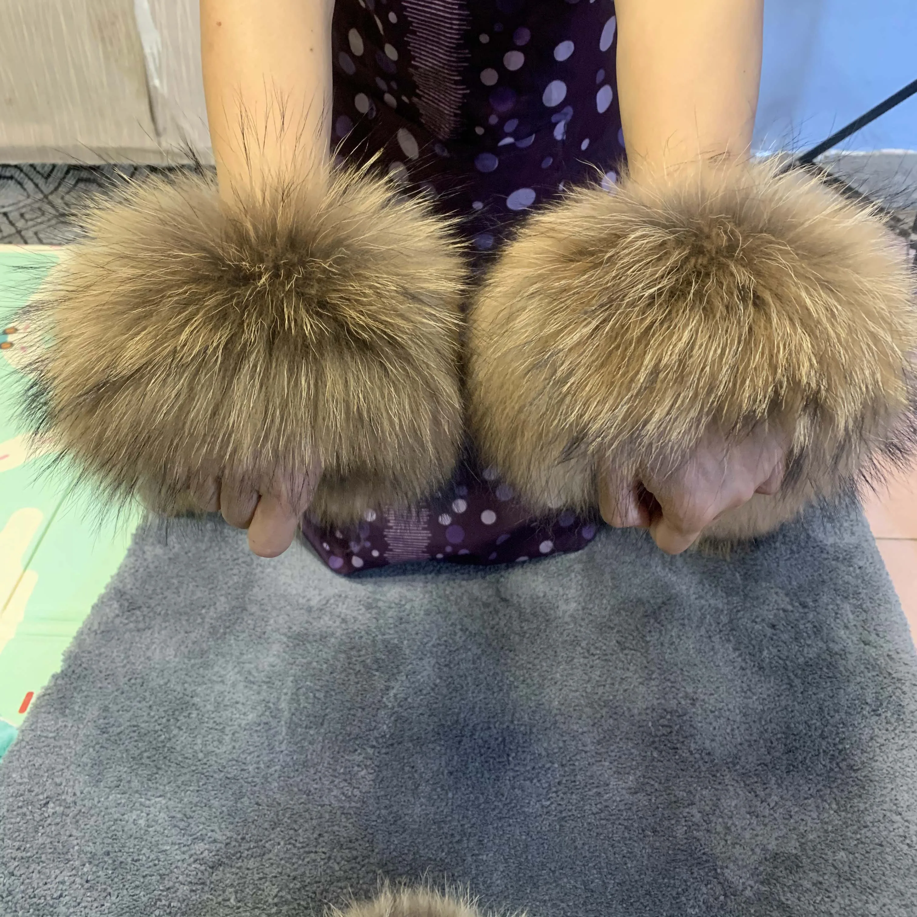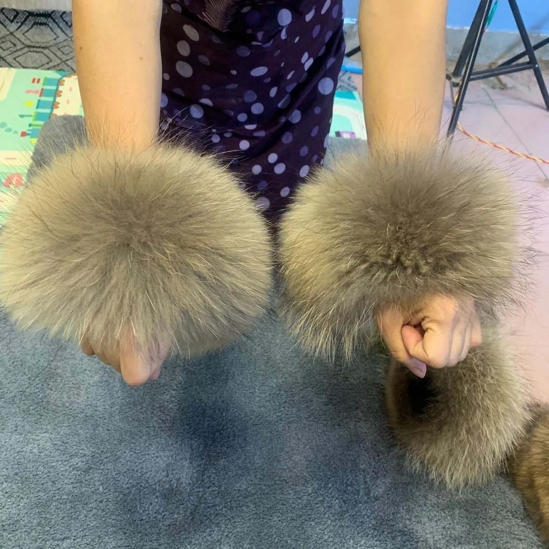 Натуральный мех енота манжеты с манжетами из лисьего меха и оторочкой из меха с длинным рукавом и меховым рукав ПЭТ Я круг с мехом