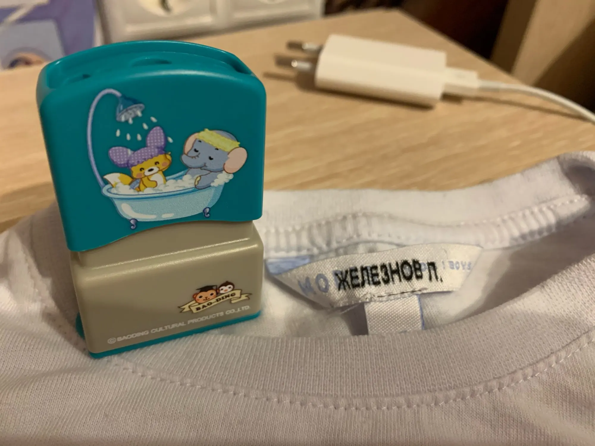 Отличный штамп, особенно для детского сада, да и в школе пригодится. Подписать можно не только одежду, а например канцелярию ребенка, так как легко ставиться и на бумаге. На одежде отлично держится, не смазывается, даже на ребристой поверхности типо колготок. Общением с продавцом довольна, на вопросы отвечал быстро и понятно. Товар отправил быстро. Доставка до Екб две недели. Али экспресс сделали скидочку,что тоже очень приятно. Однозначно рекомендую и товар и продавца. Нужная вещь, особенно если есть детсадовские, маленькие дети.