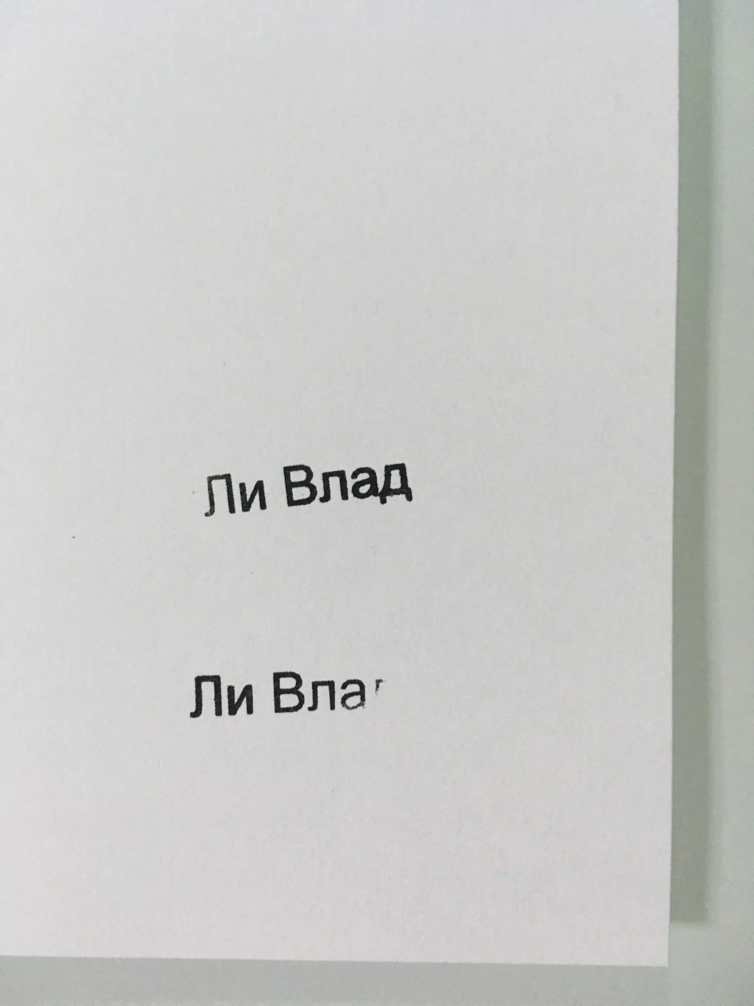 Клёвая вещь! На одежде ещё не пробовали ставить печать, но на бумаге хорошо выходит. Надпись выполнена хорошо. Только точку забыли после инициала. Но это не страшно. Так что рекомендую.