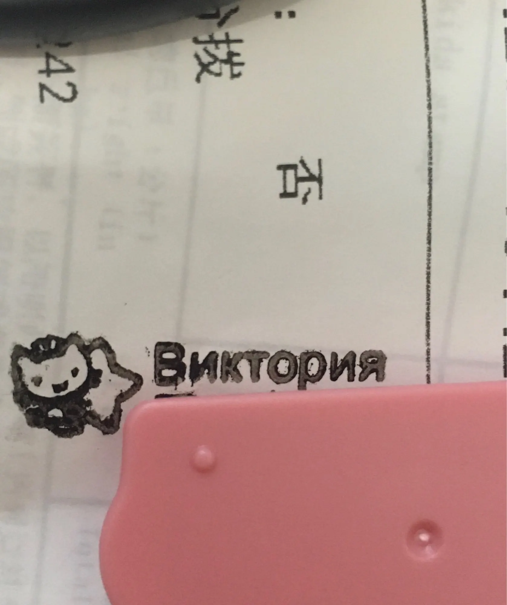 Доставка меньше месяца до СПб, трек не отслуживался, уведомление пришло, только когда штамп пришёл на почту. Сделала заказ и сразу написала продавцу, просто Фамилию и Имя. Но штамп мне пришёл бракованный, первая буква не пропечатывается целиком, она находится на закруглении штамповой подушки и поэтому не достаёт до листа, хотя место ещё есть, можно было бы при изготовлении штампа сдвинуть надпись и все бы было хорошо! Штамп сам по себе хороший, у других моих знакомых, которые заказывали здесь же, все окей! открыла спор, попросила вернуть 300₽ из 380₽, вернули! Поэтому 5 звёзд