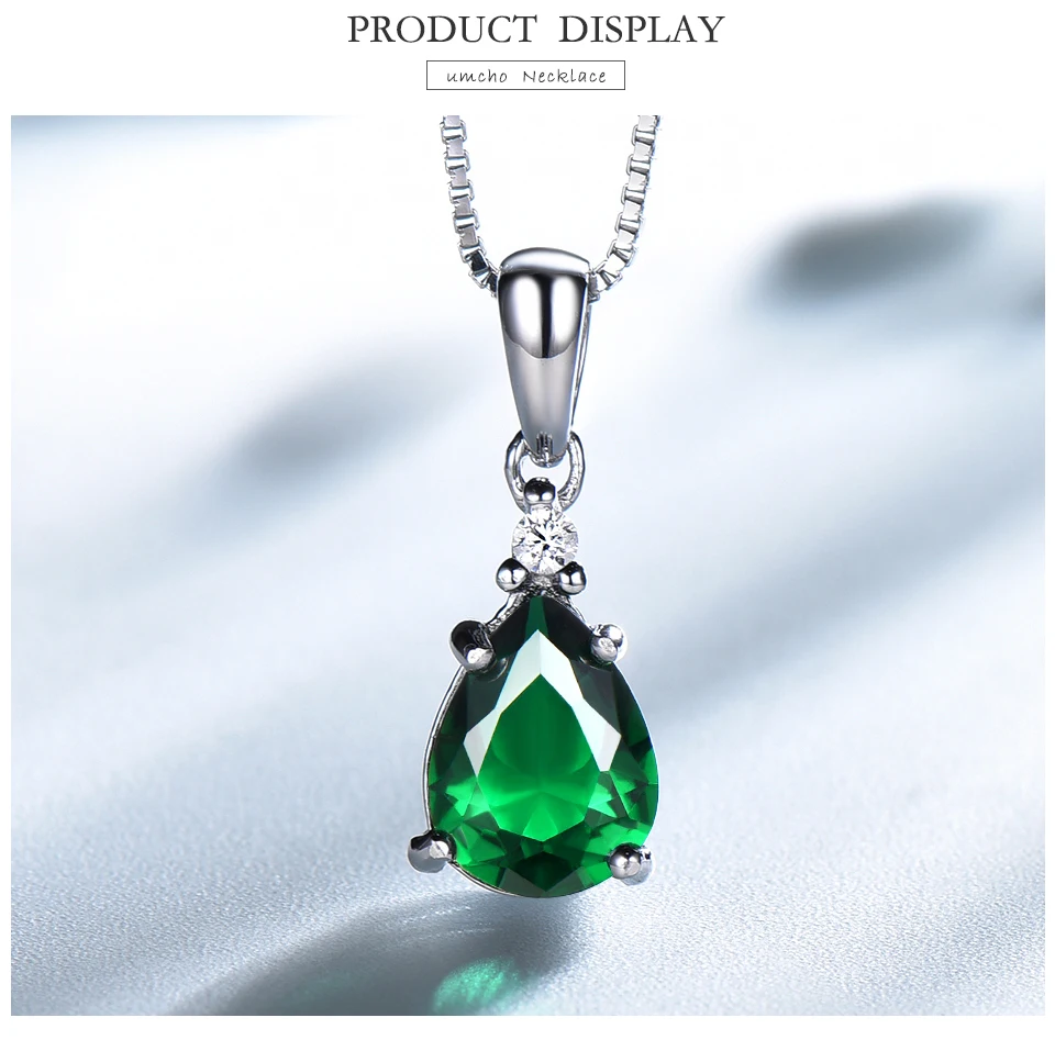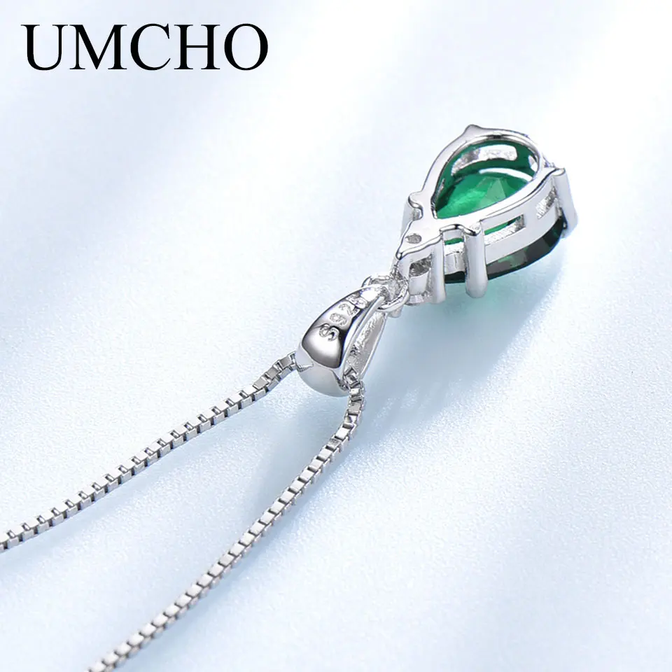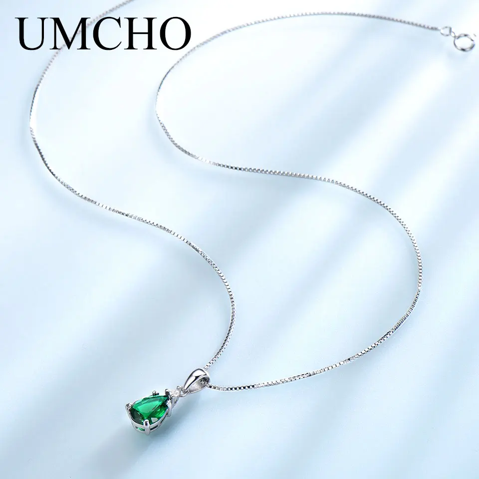 UMCHO модное ожерелье из стерлингового серебра 925 пробы с подвеской для женщин, ожерелье с подвеской из нано Изумрудного циркония, юбилейное ожерелье с цепочкой