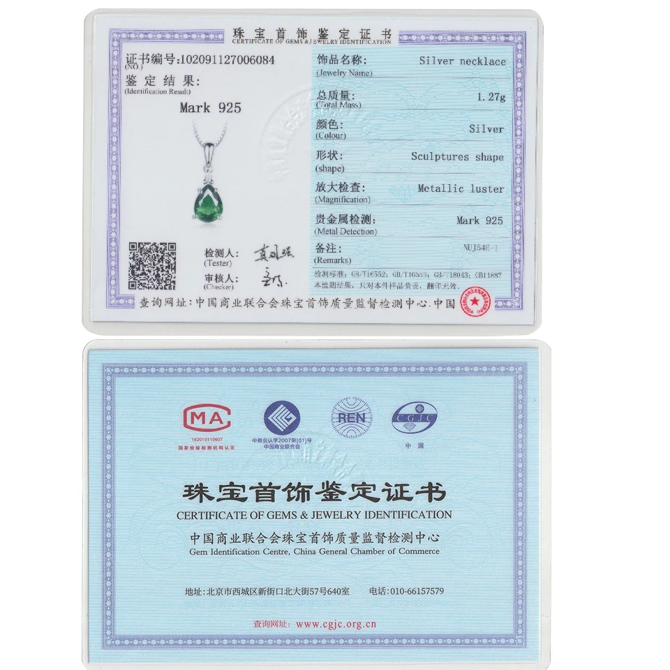 Женское ожерелье из серебра 925 пробы с зелеными подвесками