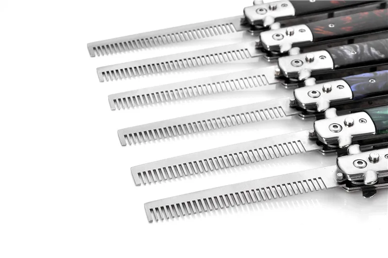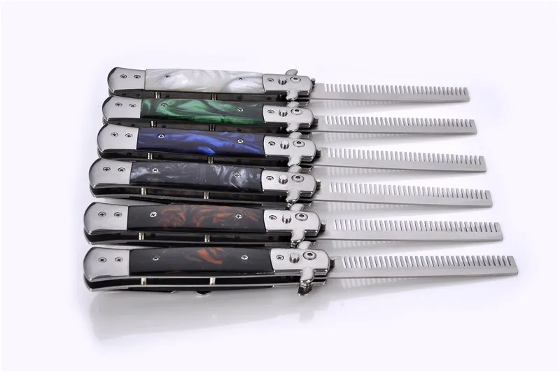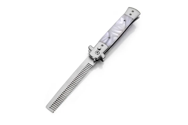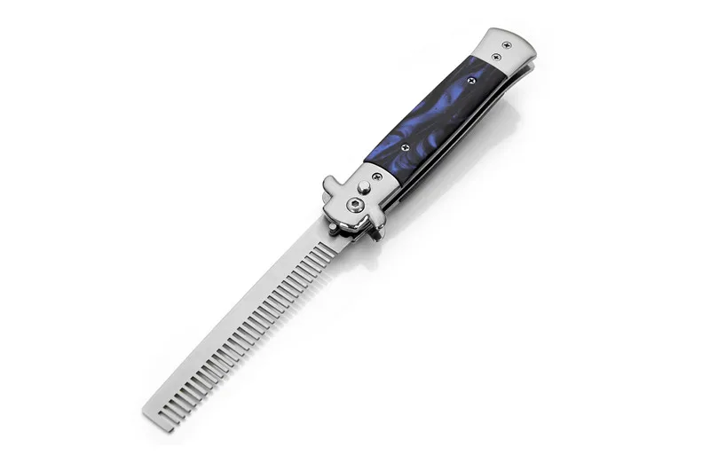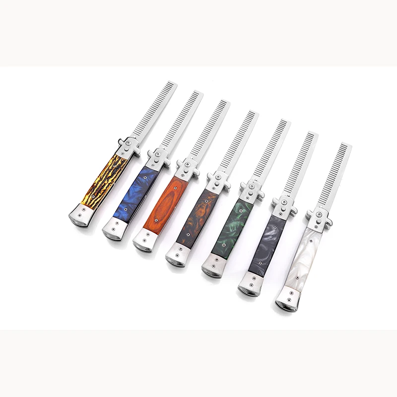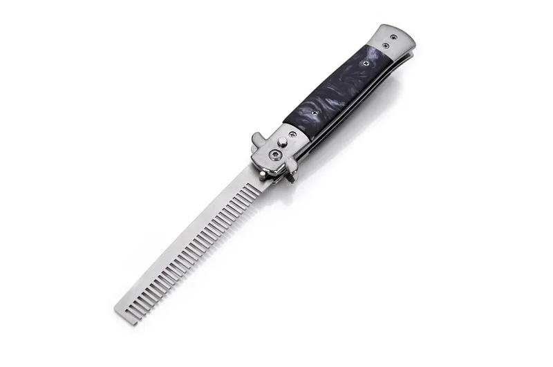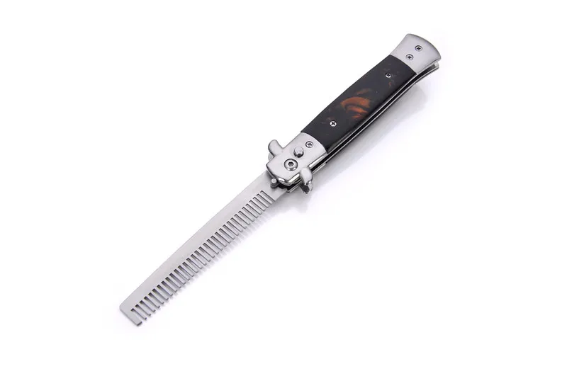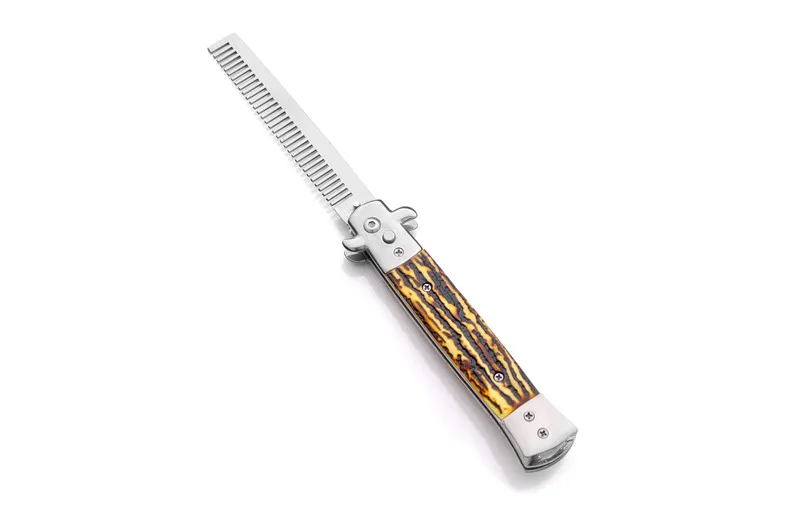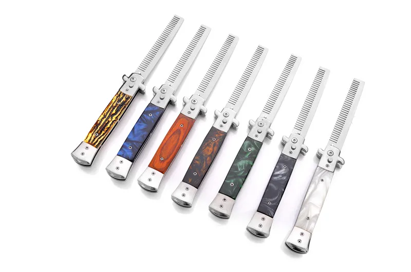 Автоматические расчески из нержавеющей стали, крутые складные ножи, кисти, триммер для волос, расческа, щетка, аксессуары, мужской карманный нож-бабочка, расческа