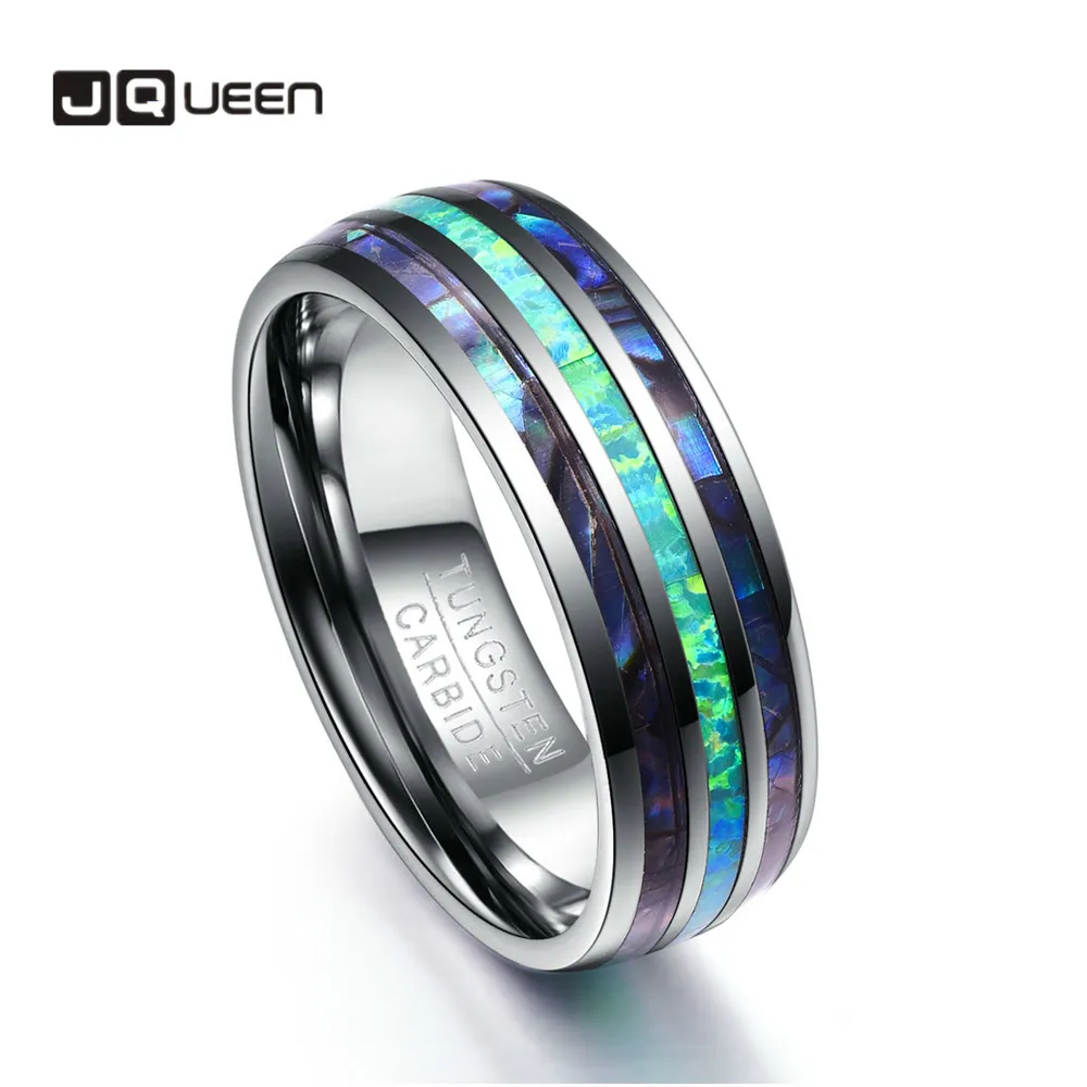 Кольцо JQUEEN из карбида вольфрама с тремя рифлеными опалами, 8 мм