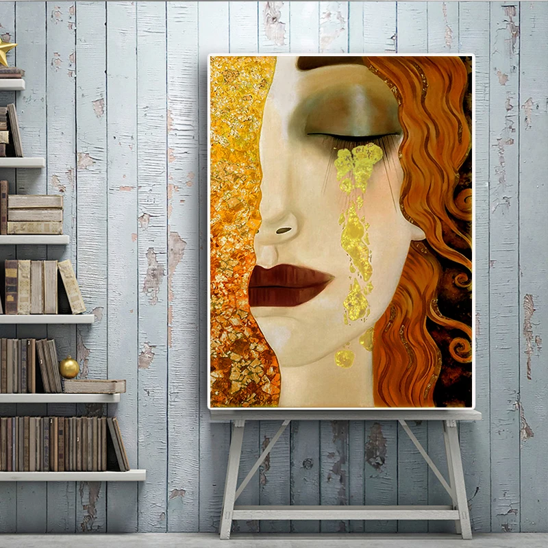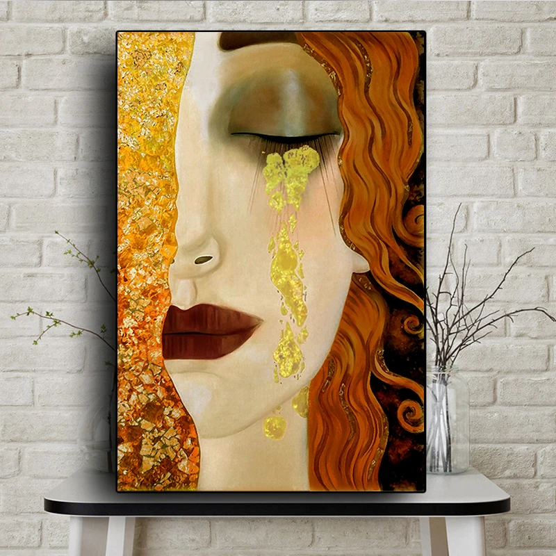 Картина на холсте с надписью Густав Климт Золотые слезы And Kiss