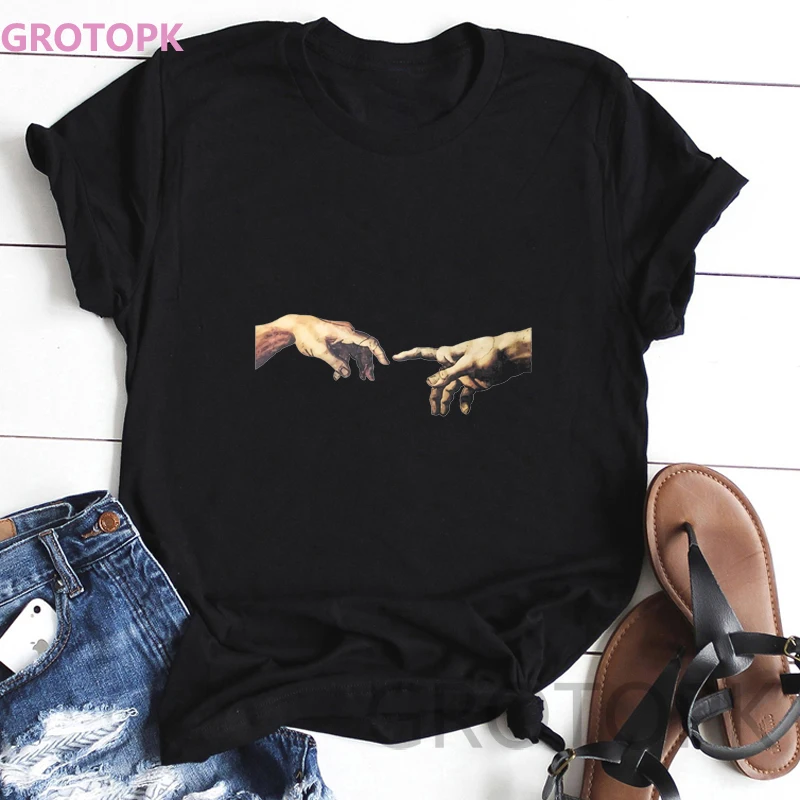 Майкл Анжело, картина, женские футболки, повседневная одежда, забавная футболка, женская черная футболка, женские футболки в стиле Харадзюку, топы
