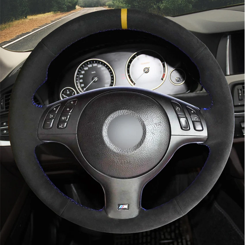 Черный замшевый желтый Маркер чехол рулевого колеса автомобиля для BMW M Sport 3 серии E46 330i 330Ci E39 540i 525i 530i M3 M5 2000-2006