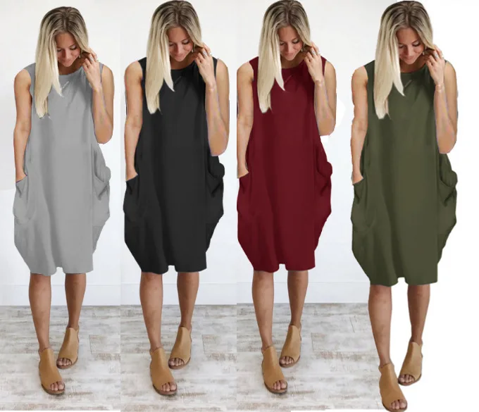 Новинка S-5XL, летние платья больших размеров, одежда без рукавов для беременных, женское повседневное свободное платье с карманами для беременных