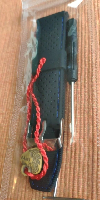 товар соответсвует описанию, продавец отправил товар быстро. до украины пришло за 3 недели, в комплекте отвёртка для смены ремешка два спрингбара в комплекте и красная ниточка