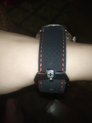 ремешок брал для часов amazfit GTR. выглядит красиво, добротно .Продавец вместе с ремешком прислал красную нить с китайским сувениром. Сам ремешок силиконовый, при носке лично у меня возникло на запястье шелушение кожи по типу аллергии, но после обработки ремешка с мылом данные явления ушли. Внутренняя поверхность ремешка ребристая, поэтому пачкается он быстрее чем родной.