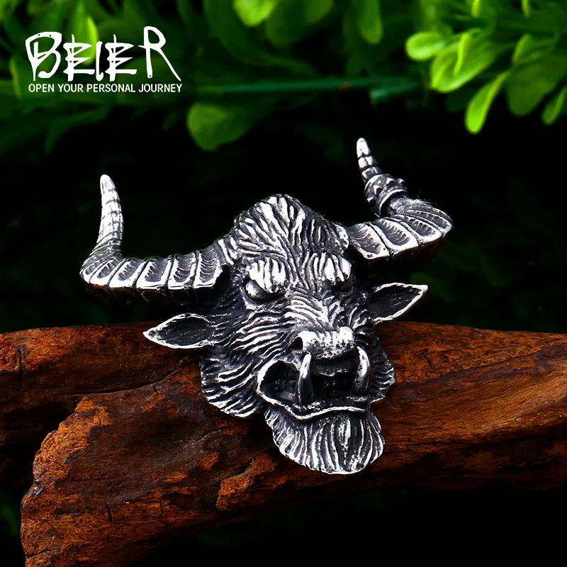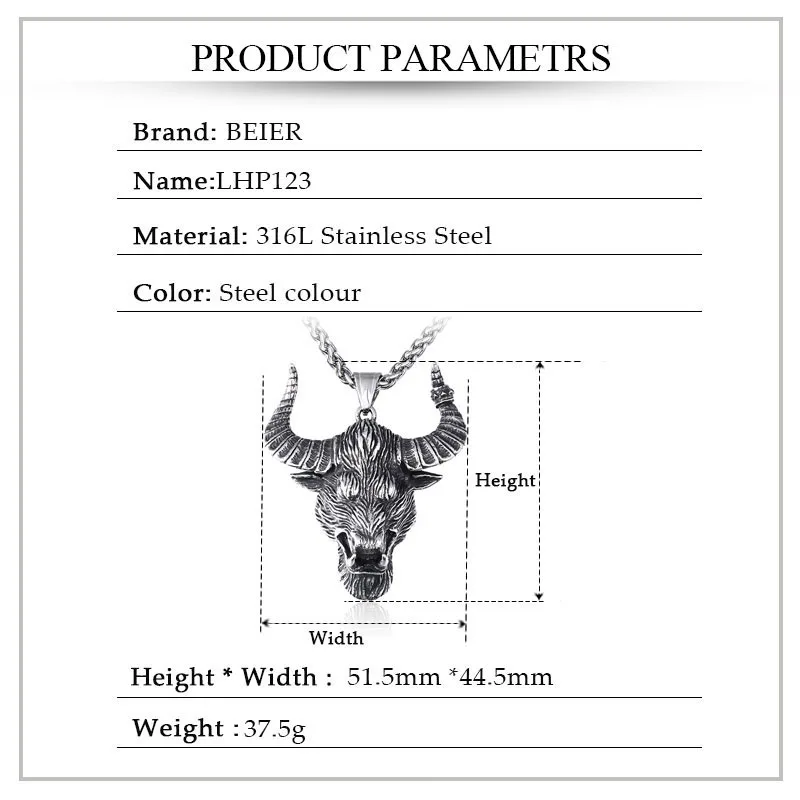 Мужской кулон голова быка викинга от BEIER, кулон из нержавеющей стали 316L в стиле панк, животное, ювелирное изделие высокого качества LLLHP123P