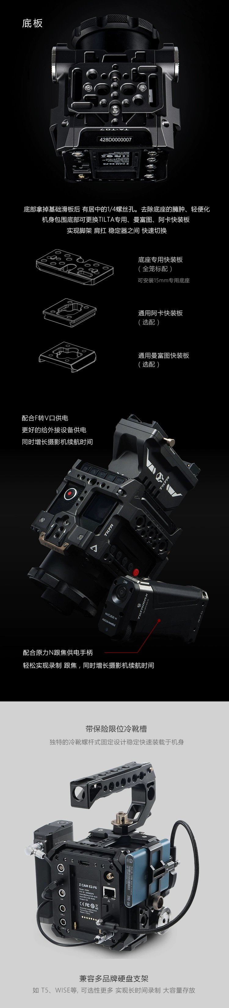 Черная клетка TILTA для камеры Z CAM E2 S6 F6 DSLR с записью на держатель кабельного зажима в, крепление для батареи TA-T07-FCC-B
