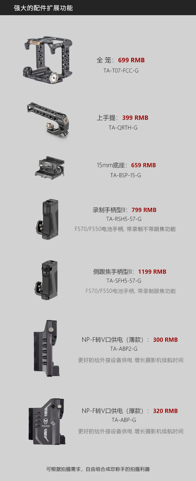 БЫСТРОРАЗЪЕМНАЯ верхняя ручка и различные дополнительные боковые ручки можно прикрепить к клетке, чтобы обеспечить различные способы комфортной работы с настройкой камеры.