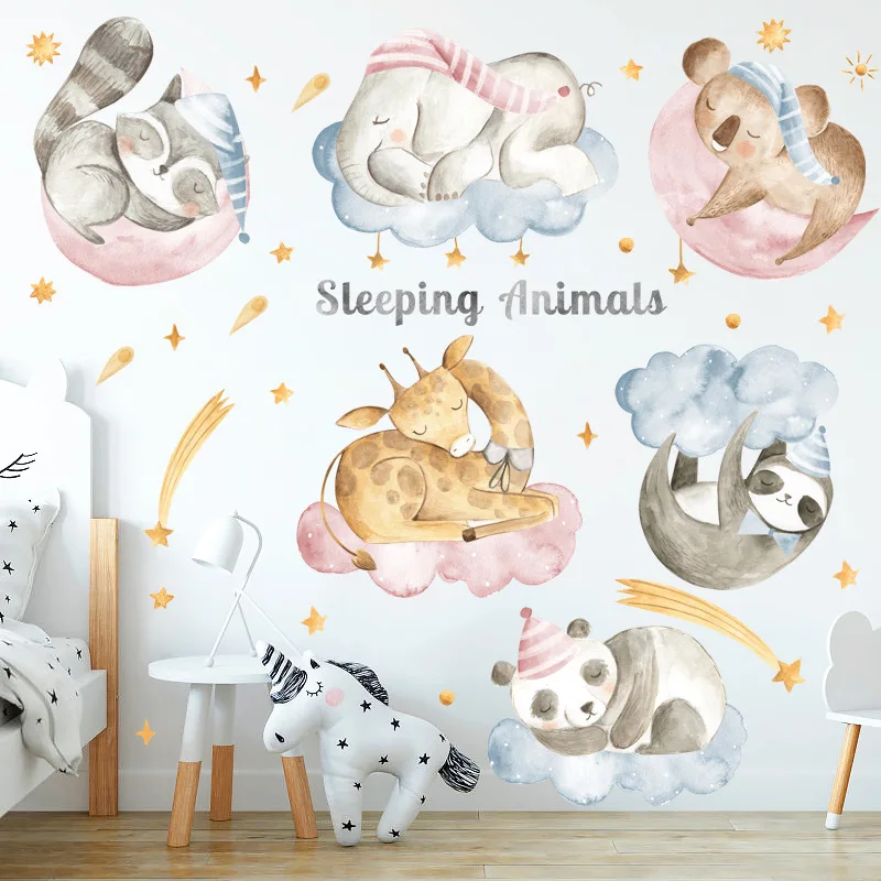 Мультяшные животные, Детские спящие настенные наклейки, панда, слон, настенные наклейки для детской комнаты, игровой комнаты, детская кроватка, домашнее украшение