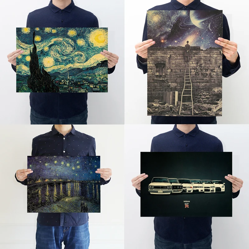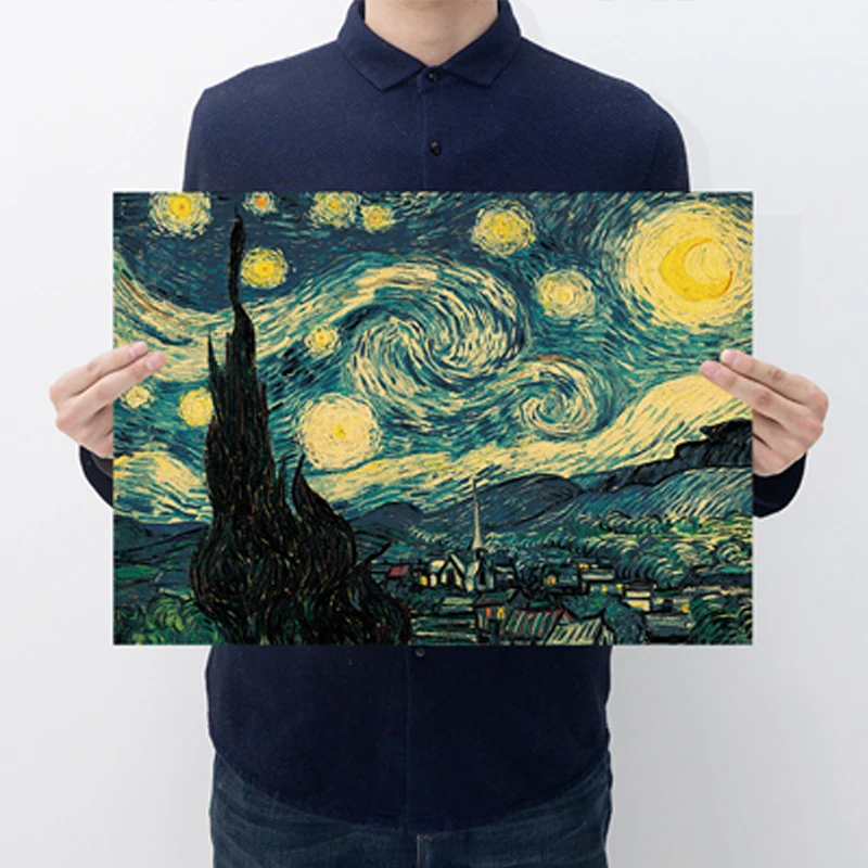 Классический знаменитый Ван Гог звездное небо на реке Рон Gtr автомобиль плакат в стиле ретро из крафт-бумаги домашний кафе бар ностальгическая декоративная живопись