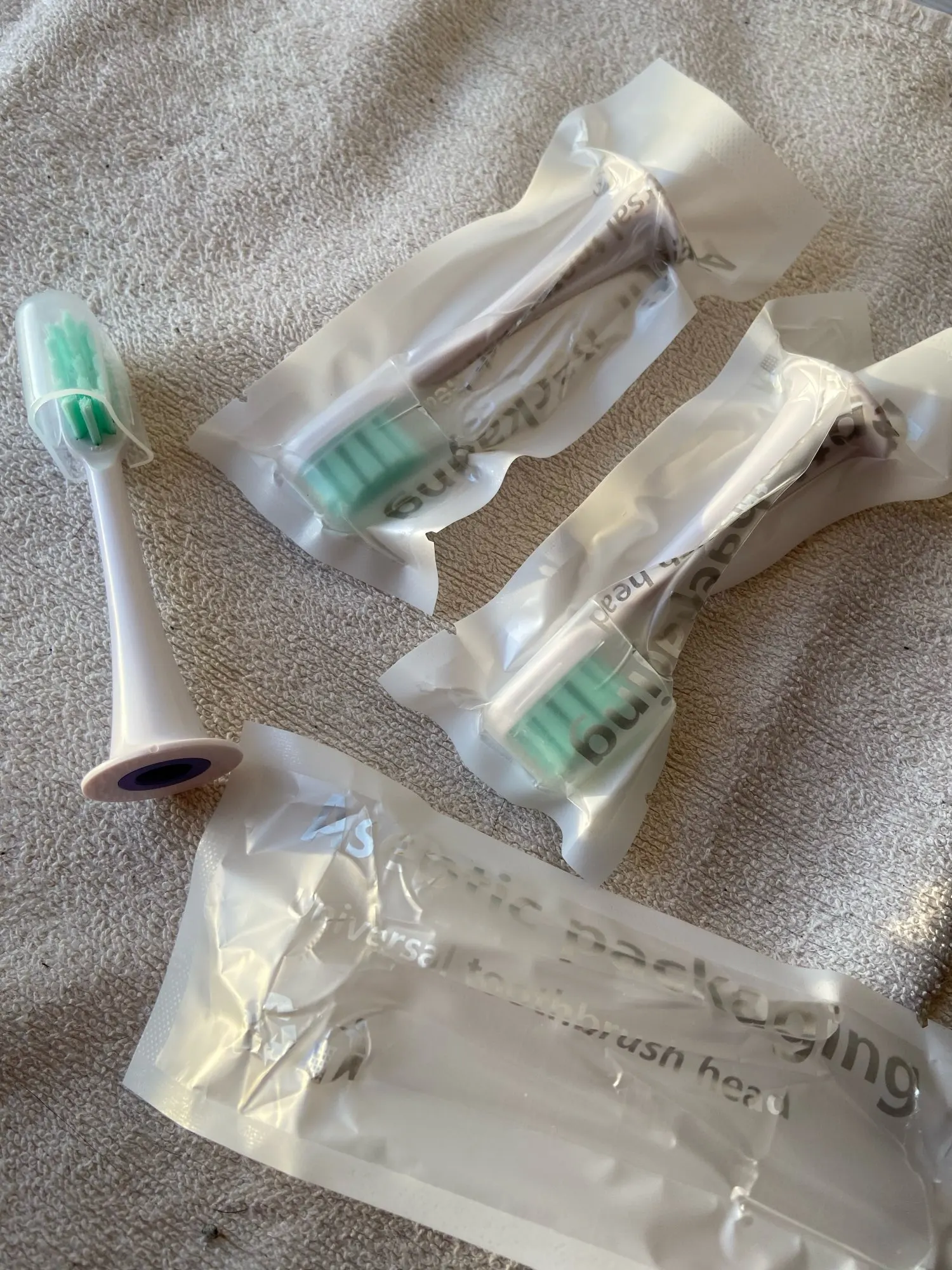 3 дополнительные насадки с зелёными головками - некачественная подделка. И дело не в цвете. У подделки отсутствует надпись, видны фабричные дефекты («точки» спереди и сзади, швы по бокам), форма немного отличается, и, что самое важное, у оригинальной насадки по-другому расположены щетинки - центральный ряд щетинок расположен выше боковых, тогда как у подделки поверхность идет на одном уровне. При чистке это ощущается. Кроме того, сами щетинки на ощупь другие и, подозреваю, быстрее придут в негодность. Если бы я знал, что дополнительные насадки подделка - взял бы только щётку и поискал бы оригинальные насадки у другого продавца. По доставке - до Иркутска шло месяц.