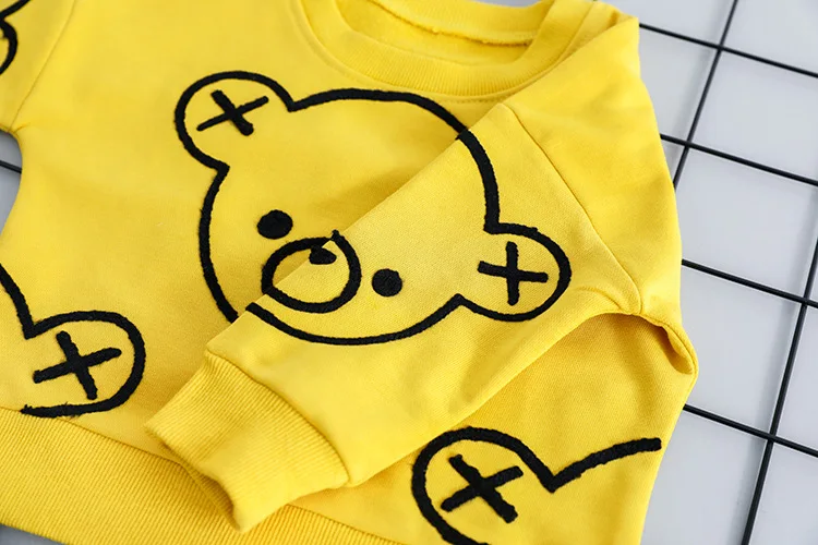 Комплект одежды для маленьких мальчиков, хлопковая Футболка с рисунком медведя и штаны, костюм с длинным рукавом для младенцев, 3 цвета, осень-весна