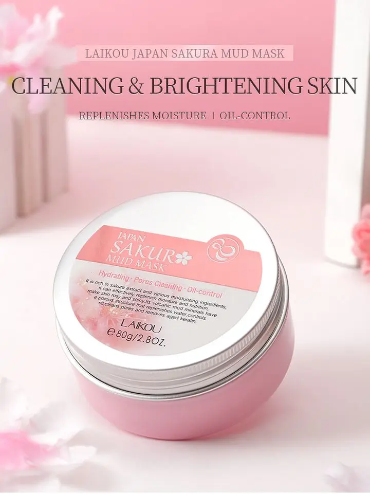 Маска для лица LAIKOU с цветами вишни, розовая грязевая маска для лица, контроль жирности, увлажнение, глубокое отбеливание очищение, Корейская маска для ухода за кожей