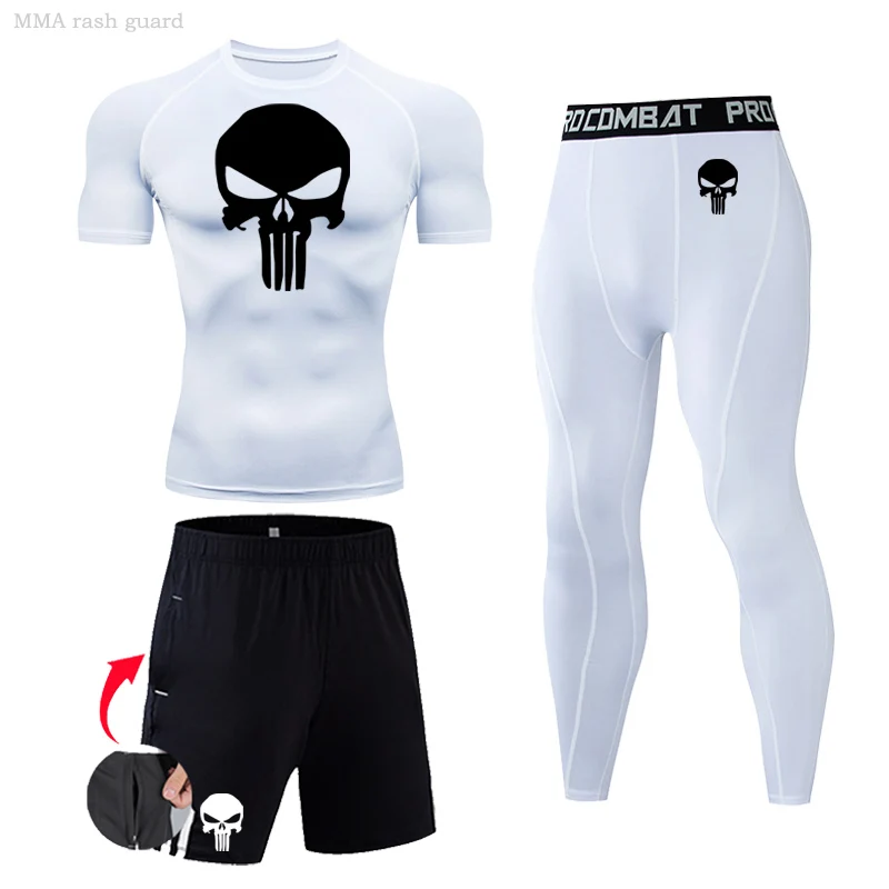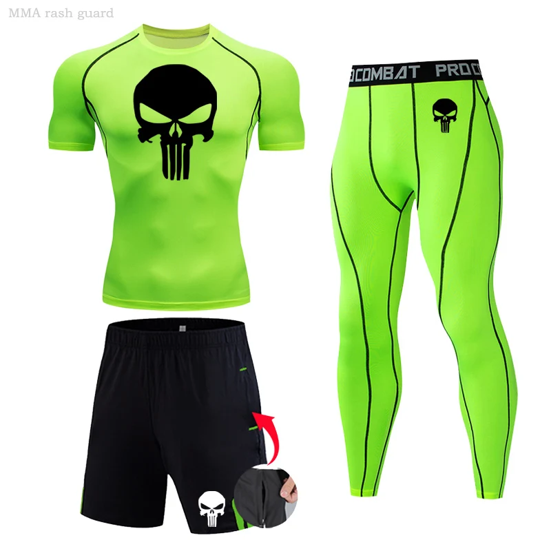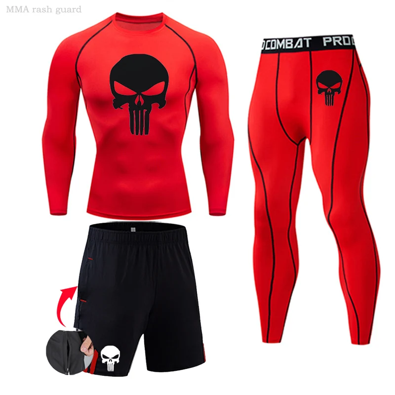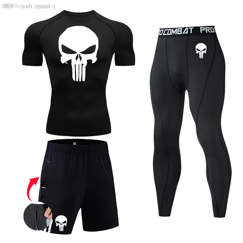 Мужской компрессионный спортивный костюм-тройка, тактические леггинсы, спортивный костюм с черепом, брендовая мужская одежда, новинка 2020
