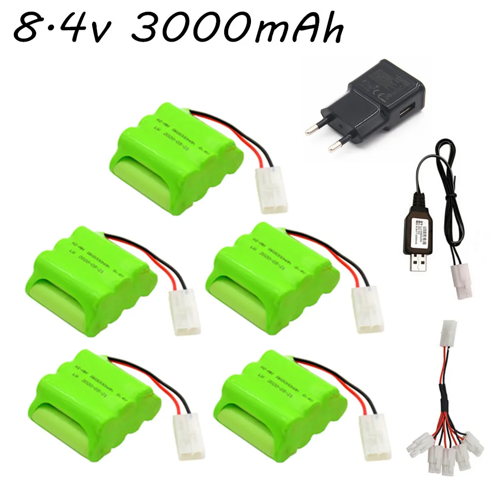Никель-металлогидридный аккумулятор 8,4 в 3000 мА ч, Аккумулятор AA, NIMH + зарядное устройство USB, набор для радиоуправляемых игрушек, автомобилей, лодок, роботов, танков, пистолетов