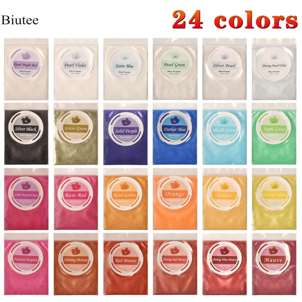Слюдяная пудра Biutee, 24 цвета, 10 г, жидкая краска сделай сам, натуральный жемчуг, блестящий порошок для ногтей, жемчуг, ювелирные изделия, эпоксидная смола, мыло для нейл-арта