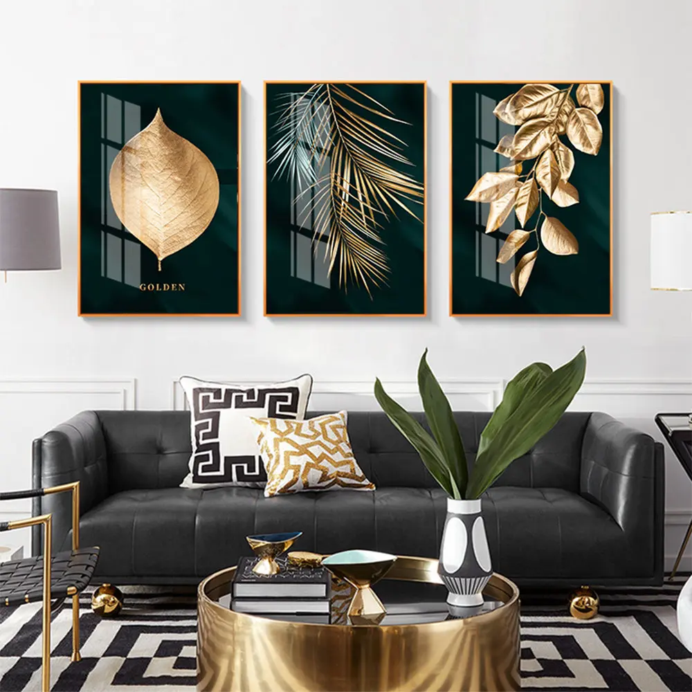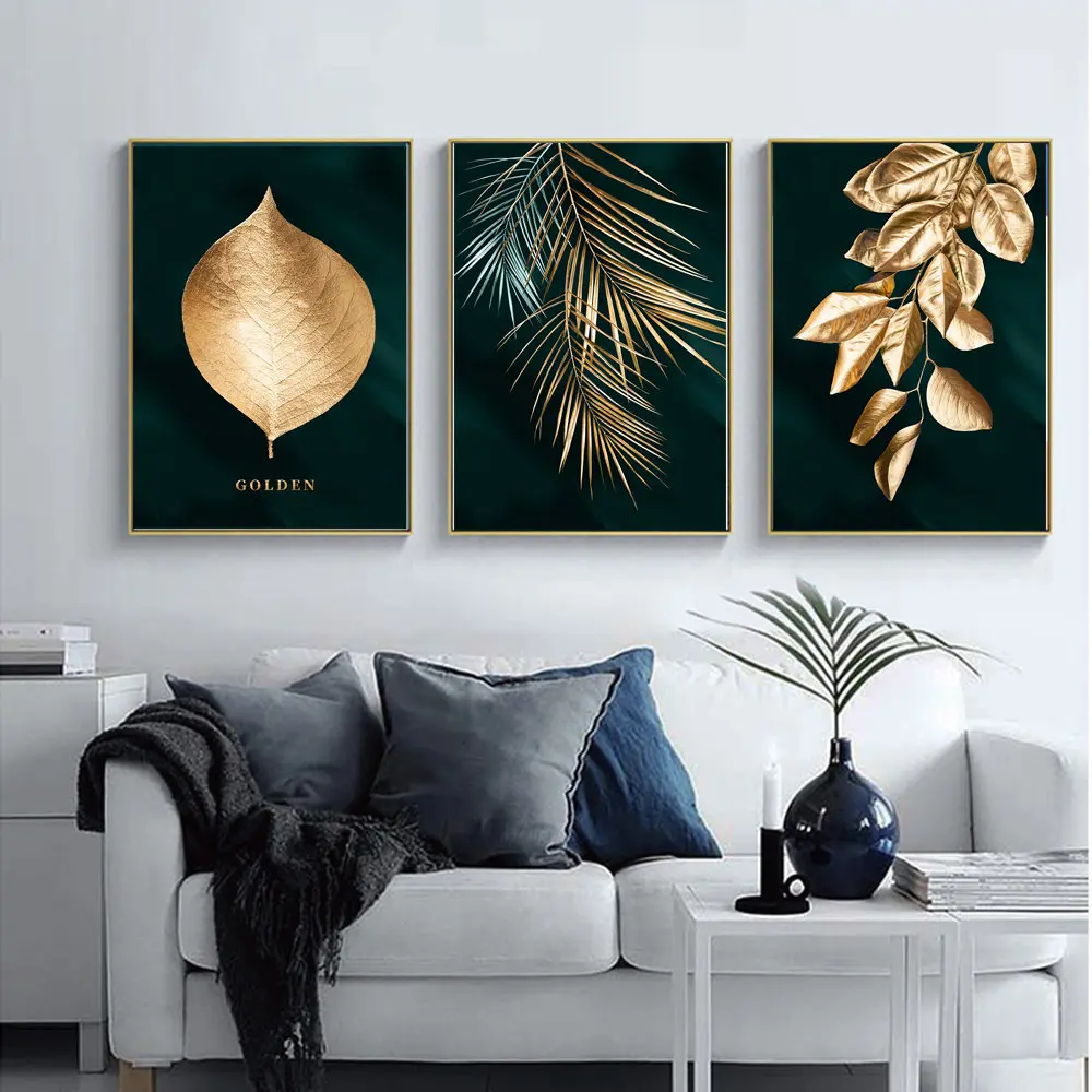 3 шт., скандинавские золотые и зеленые листья, настенная живопись, дропшиппинг, холст, плакаты, печать, без рамки, куадро, украшение для гостиной, фотографии