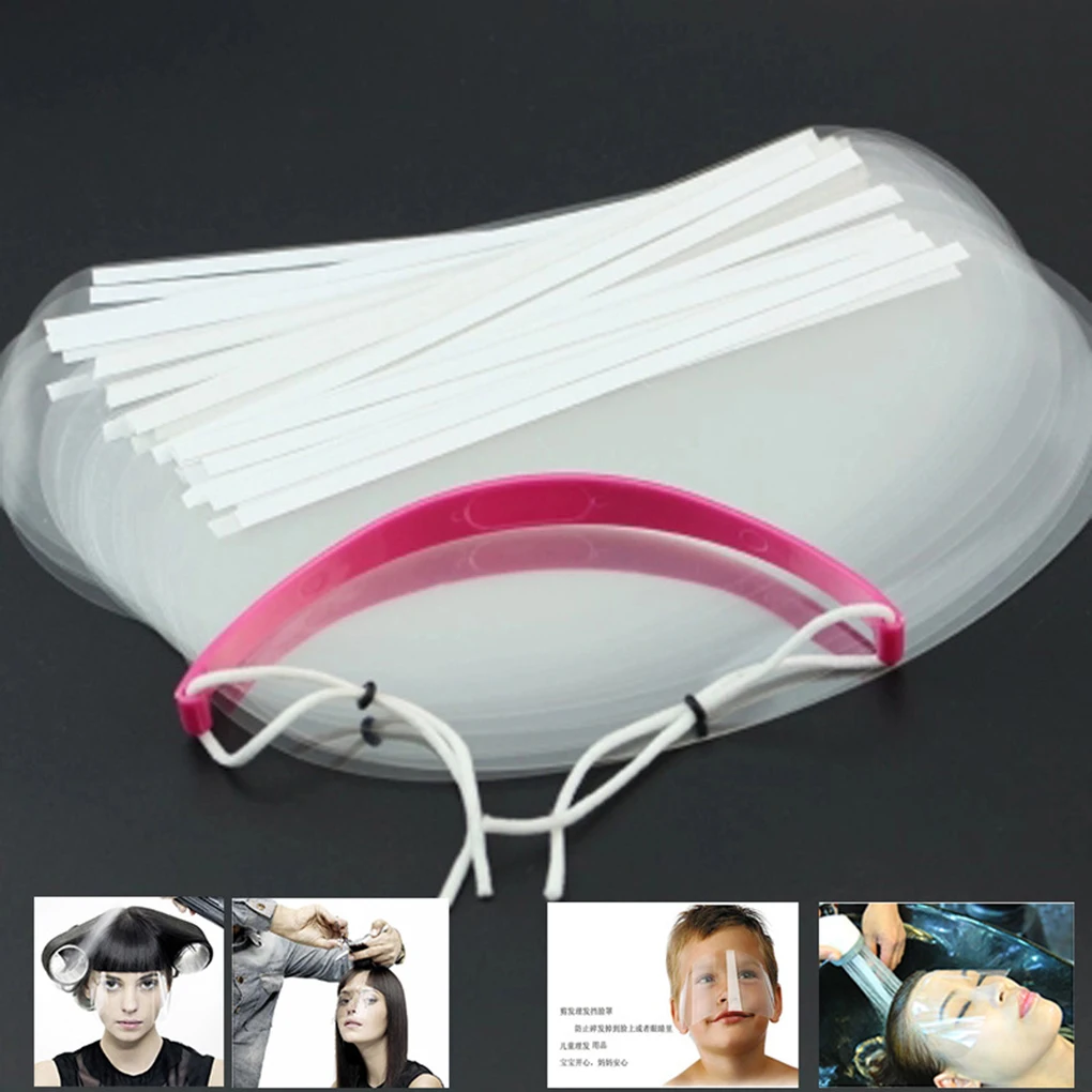 50 шт.компл., прозрачный одноразовый лицевой щит для лака для волос, пластиковая маска для защиты волос на лбу, инструмент для защиты лица
