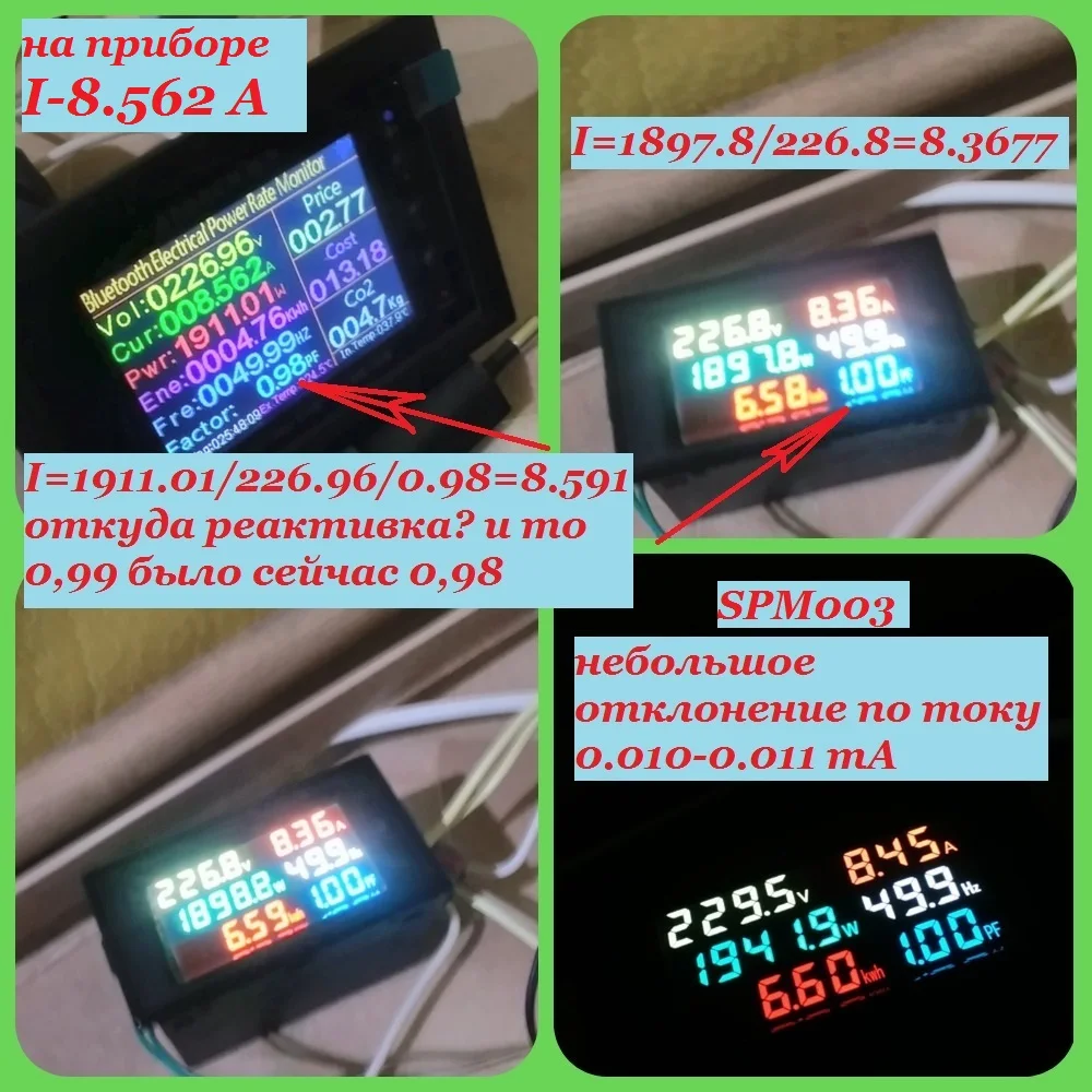 Отличный измеритель. Показания точные. Маленький минус: небольшая погрешность по току, около 11 мА. Фото, от отзыва AT24, не измеритель а красивая бестолковая хрень. Куча калибровок, а толку нет. Врёт как сивый мерен. У SPM003 калибровок нет, показания точные, небольшая погрешность, но это мелочи. Измеритель отличный.
