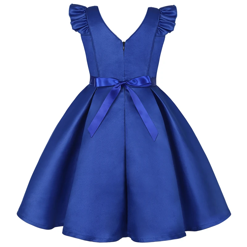 Летнее элегантное платье с блестками и v-образным вырезом для девочек вечернее платье с бантом и цветами подходит для девочек 3-9 лет, вечернее платье на день рождения.