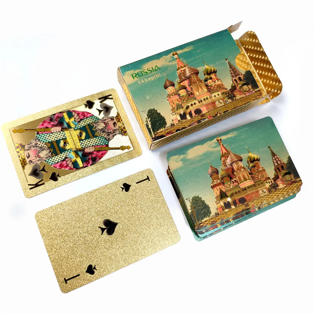 2020 новые 54 шт. картколода русские 24K игральные карты из золотой фольги ПВХ пластиковые стандартные игровые карты