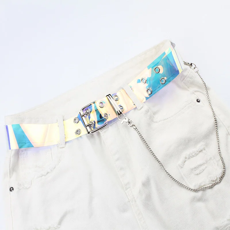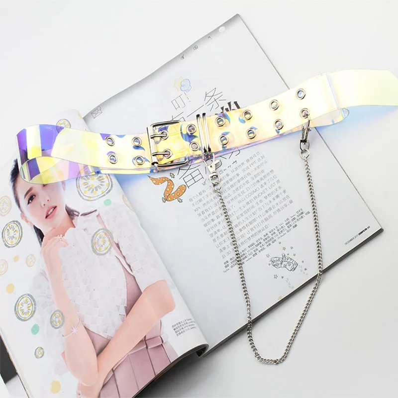 Женский прозрачный ремень с цепочкой, металлический квадратный серебристый ремень с пряжкой, цветной модный ремень для студентов