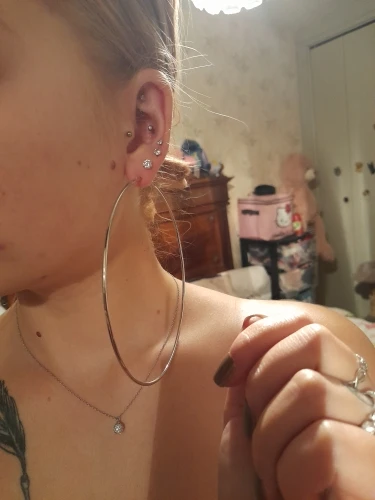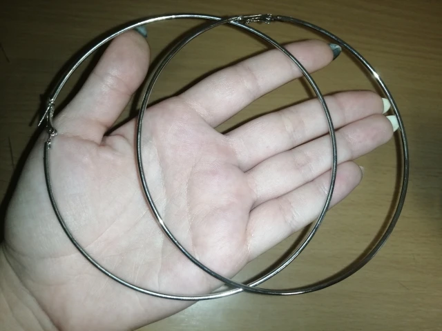 Arrived earlier than expected. I was surprised on the sizing, they are quite large. Purely metallic hoops; no rusting. Cute for casual or street wear. Would recommend the seller. Thank you!