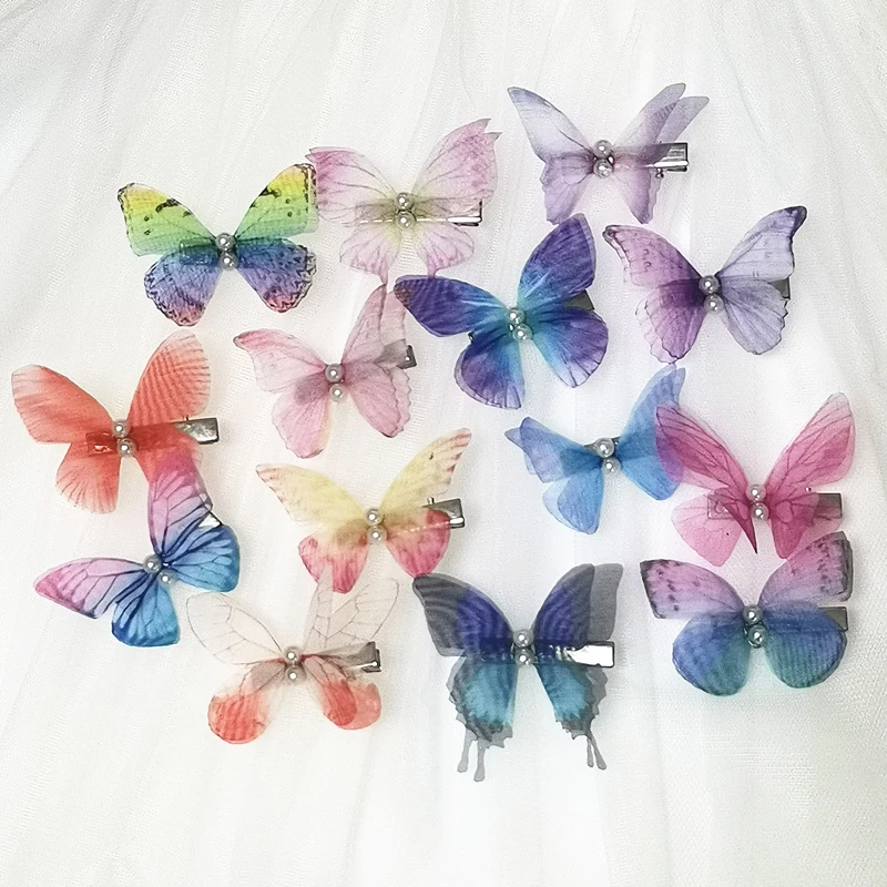 5 см двухслойный Тюль Бабочка заколка для волос для женщин свадебный головной убор для девочек шпилька Марля бабочка аксессуары для волос украшения